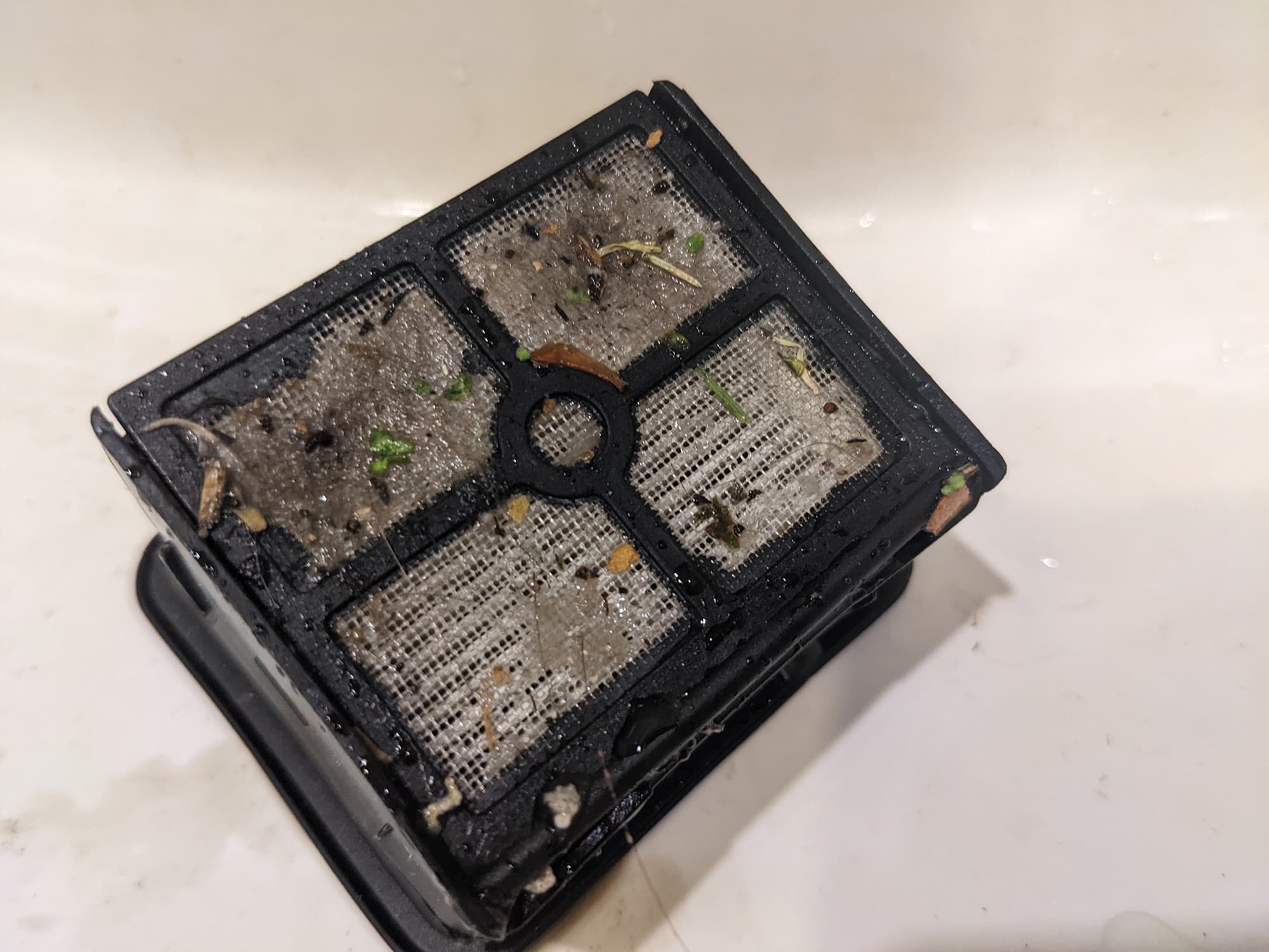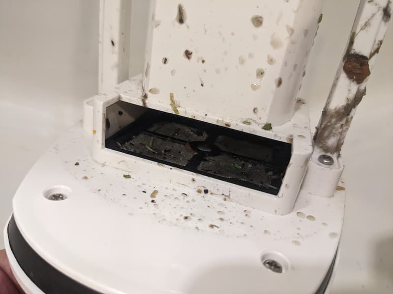 Пространство перед фильтром никак не защищено (у Redkey W12, который мы рассматривали не так давно, этот узел заполнен крупноячеистым поролоном). Впрочем, серьезной проблемой это не является: мусора на сетке фильтра скапливается не слишком много.