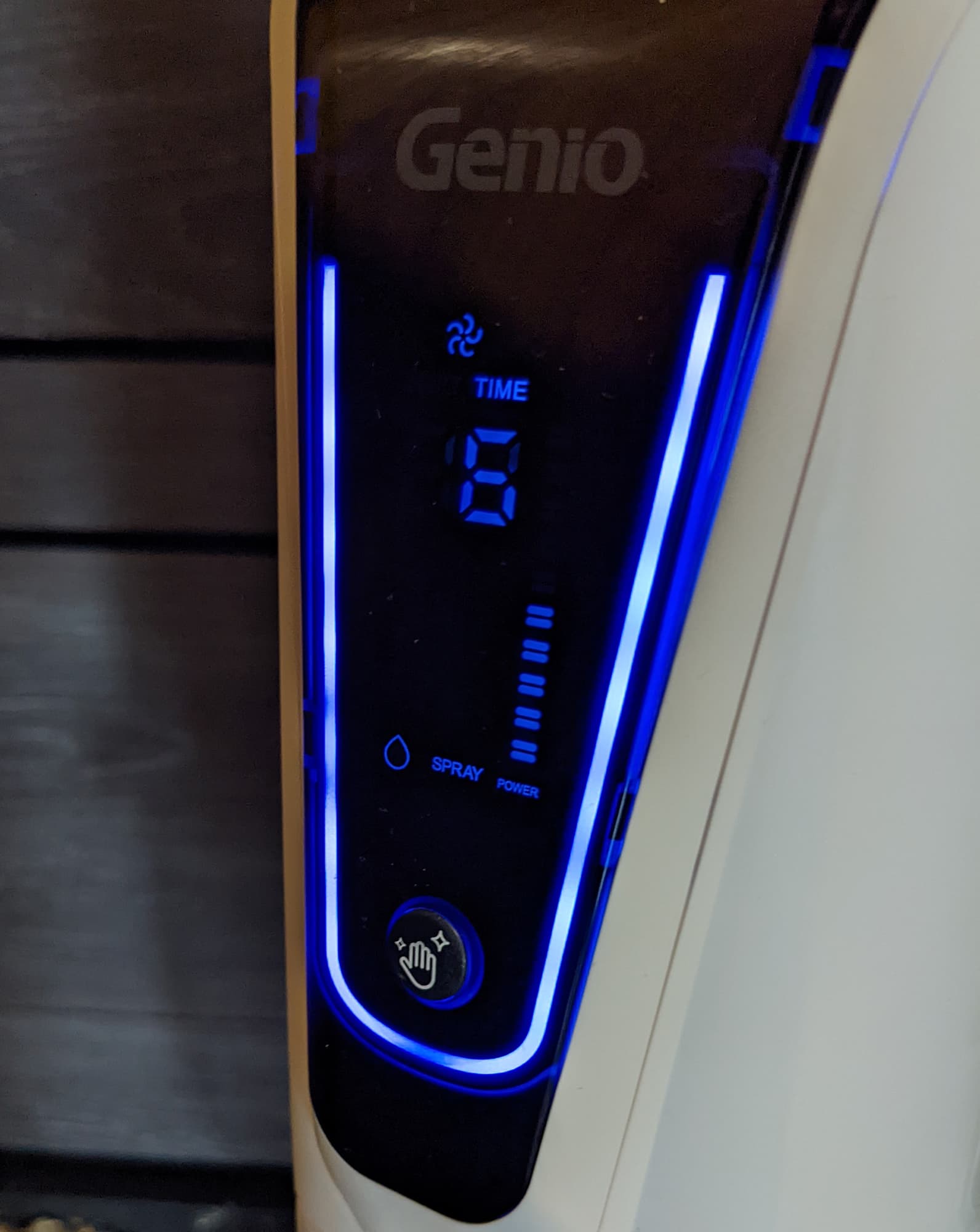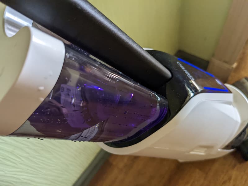 Бак для чистой воды у Genio Magic Wash T10 подсвечивается RGB-светодиодом. Во время сухой уборки подсветка синяя, при нажатии на клавишу подачи воды — фиолетовая, а в режиме самоочистки — зеленая.