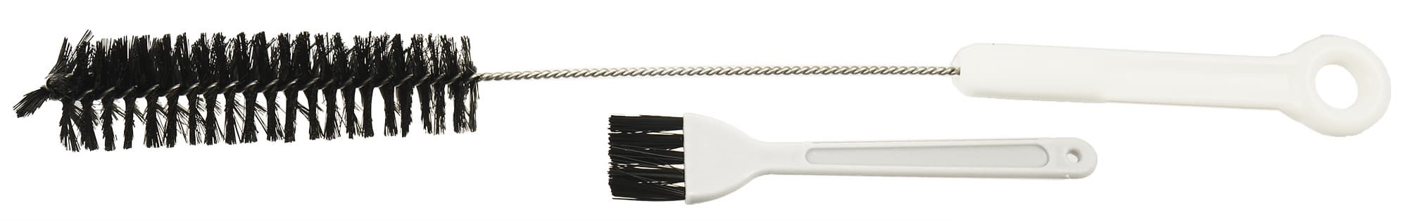 Для ухода за пылесосом в комплекте есть две щетки: цилиндрическая на длинной витой проволочной ручке используется для прочистки «грязного» резервуара, а плоская предназначена для фильтрующего элемента.