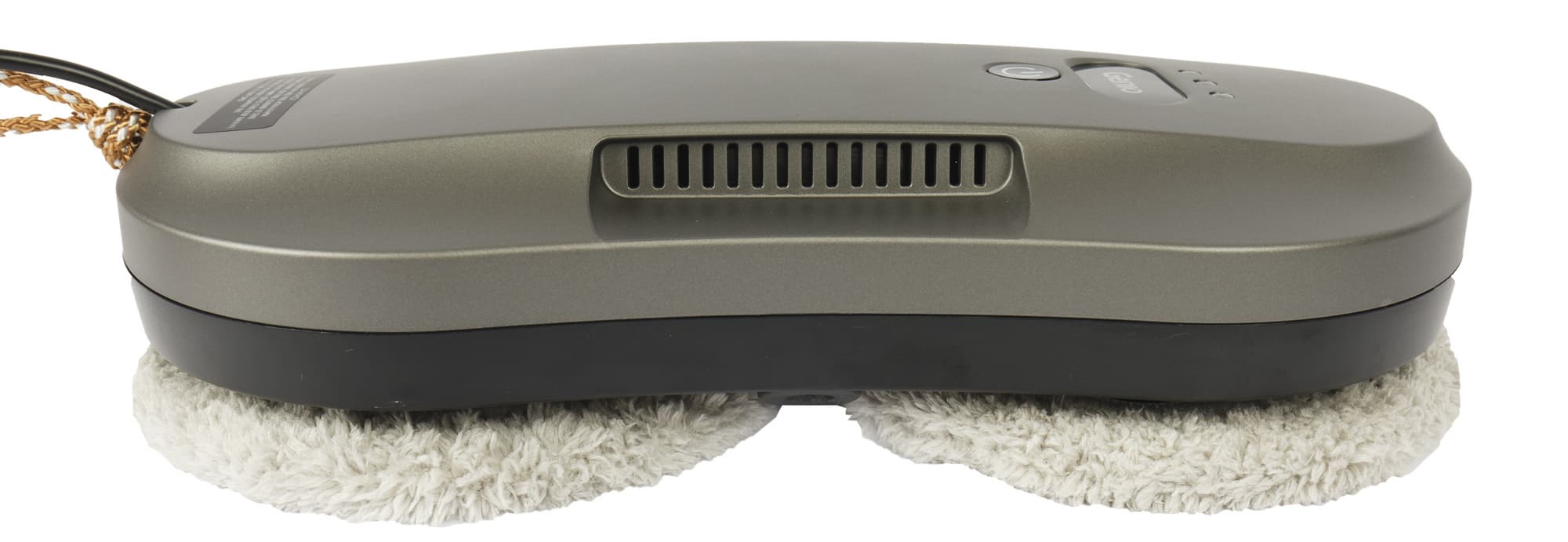 Прижимную силу робота к стеклу обеспечивает скрытый в корпусе бесщеточный мотор с силой всасывания 2800 Па. Два съемных пластиковых круглых колеса на дне корпуса выполняют роль присосок. Колеса фиксируются на корпусе защелкиванием.