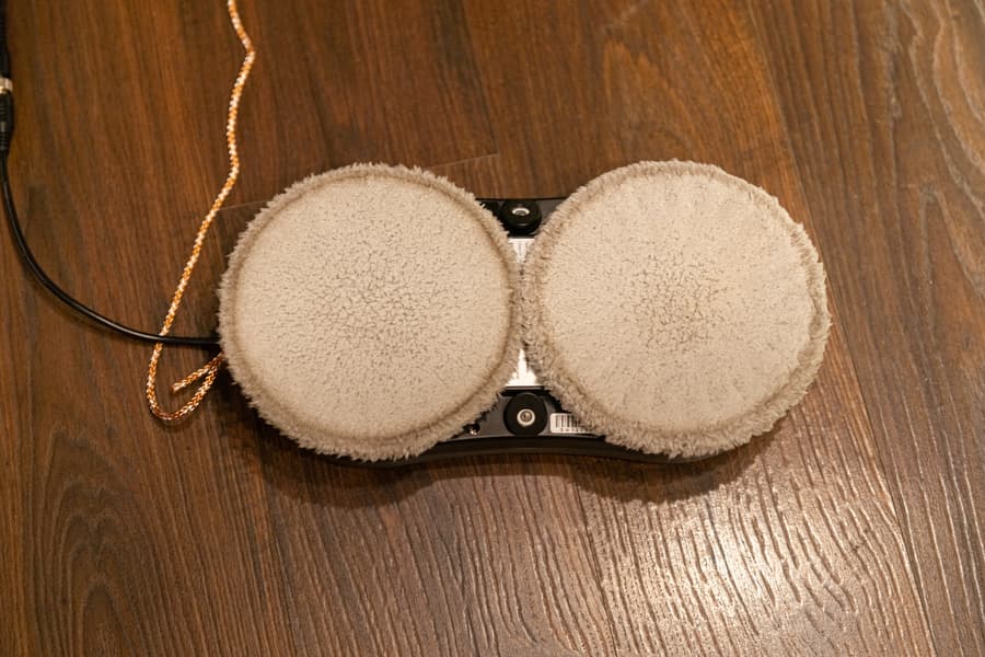 На колеса надеваются мягкие махровые салфетки из микрофибры, они же мопы. В салфетки вшиты тугие резинки, за счет чего на колесах они держатся очень крепко. Диаметр каждой чистящей поверхности — 14,5 см.