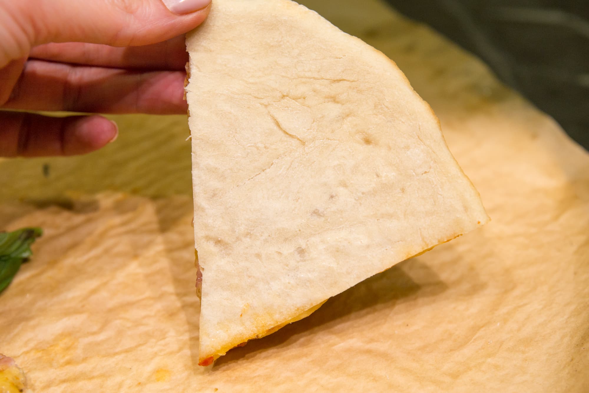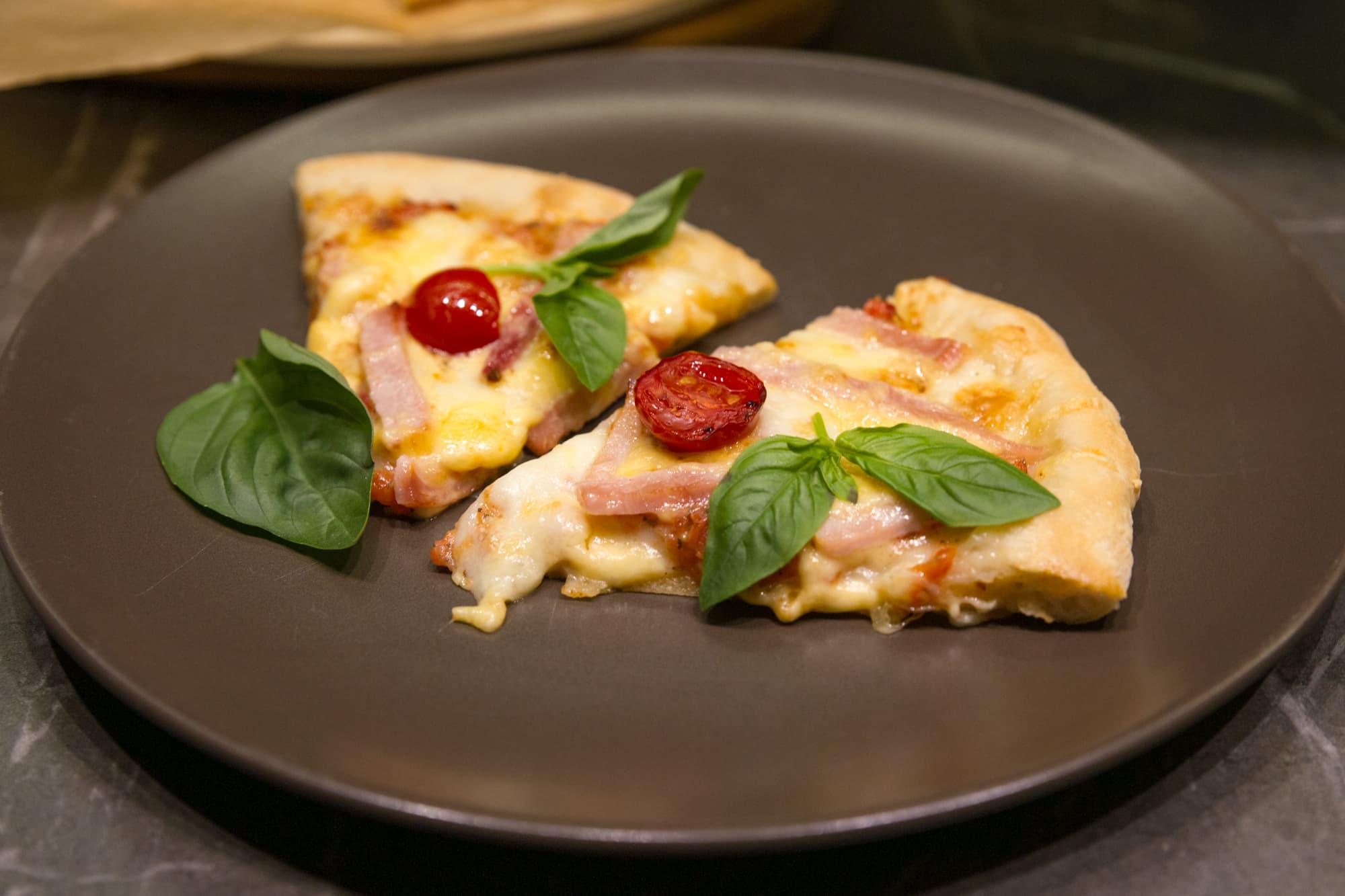 Главное — что у нас всё получилось: сыр должным образом расплавился, а тесто пропеклось по всей плоскости.