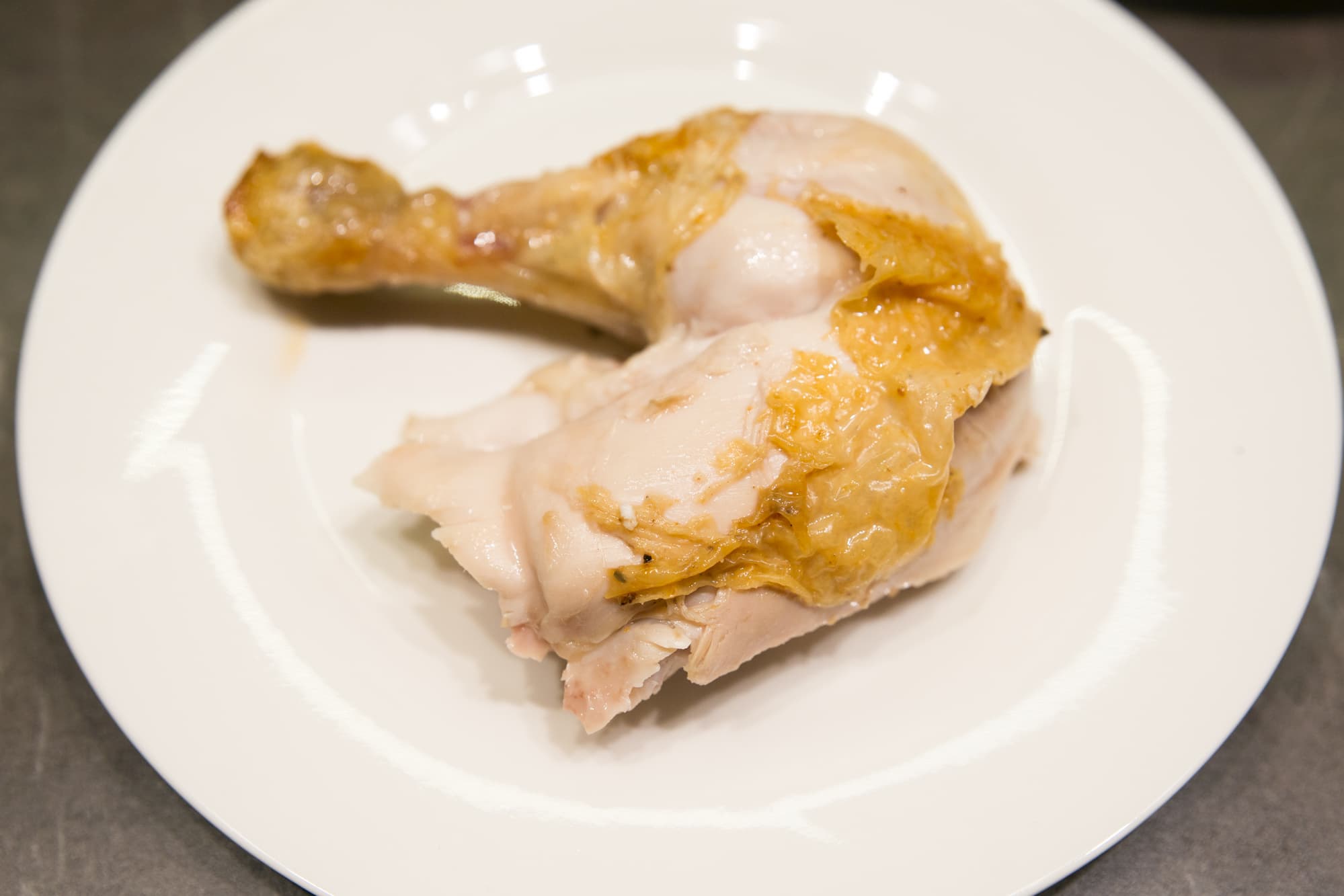 Когда раздался сигнал о завершении работы, открыли дверцу и воткнули в птицу термощуп, чтобы проверить готовность. Дисплей показывал 74 °C.