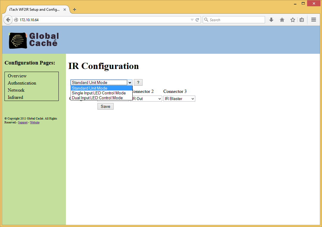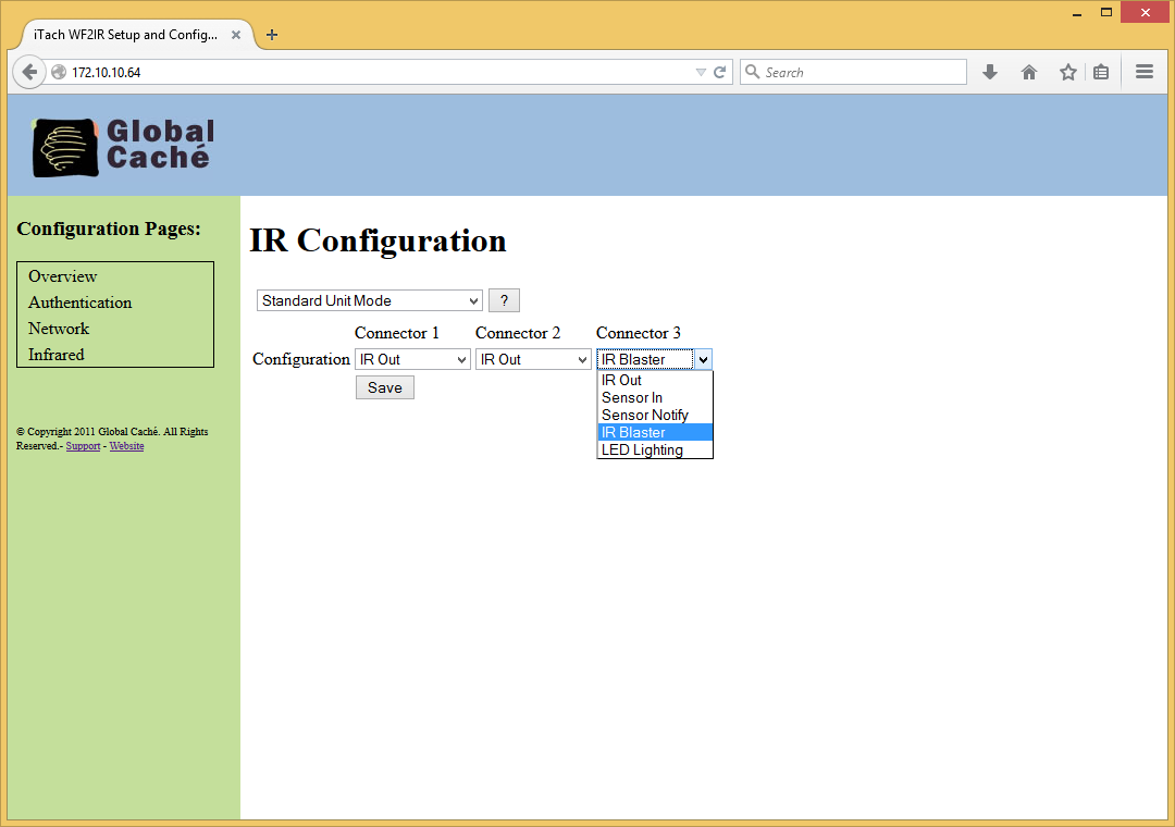 Для IR-устройств через веб-интерфейс настраивается тип подключений для каждого разъема. Заметим, что некоторые параметры можно будет в дальнейшем изменить специальным командами без использования веб-интерфейса.Использование в системах автоматизации