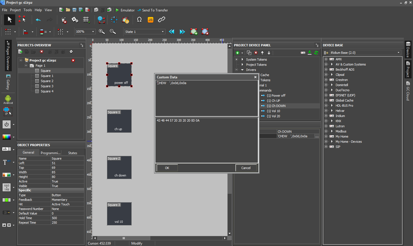 Кроме того, прямо из интерфейса редактора доступна функция обучения. Для контроллера последовательного порта такой базы команд нет и вам придется самостоятельно вписывать требуемые коды из документации к оборудованию. Отметим, что на сайте разработчика iRidium можно найти подробные руководства и примеры использования данного сочетания.
