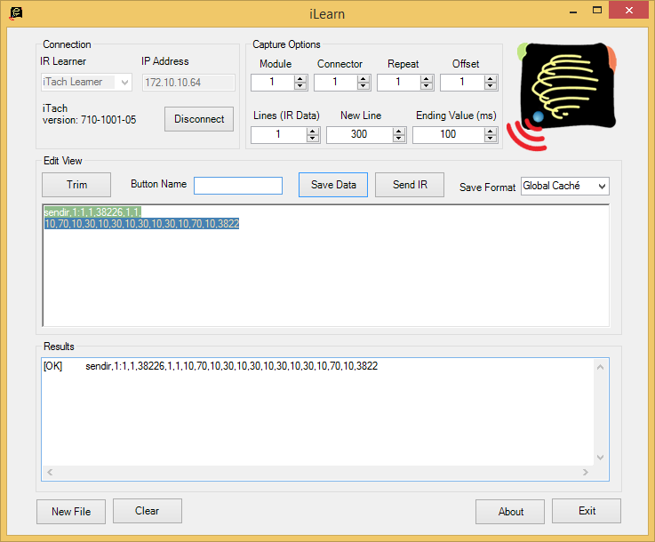 Для получения необходимых для передачи пакета данных есть несколько способов — использование готовой базы кодов, что применяется в некоторых системах автоматизации, конвертация кодов из формата HEX в оригинальной утилите iConvert или обучение через встроенный ИК-приемник (или внешний в случае серии GC-100) с использованием программы iLearn.