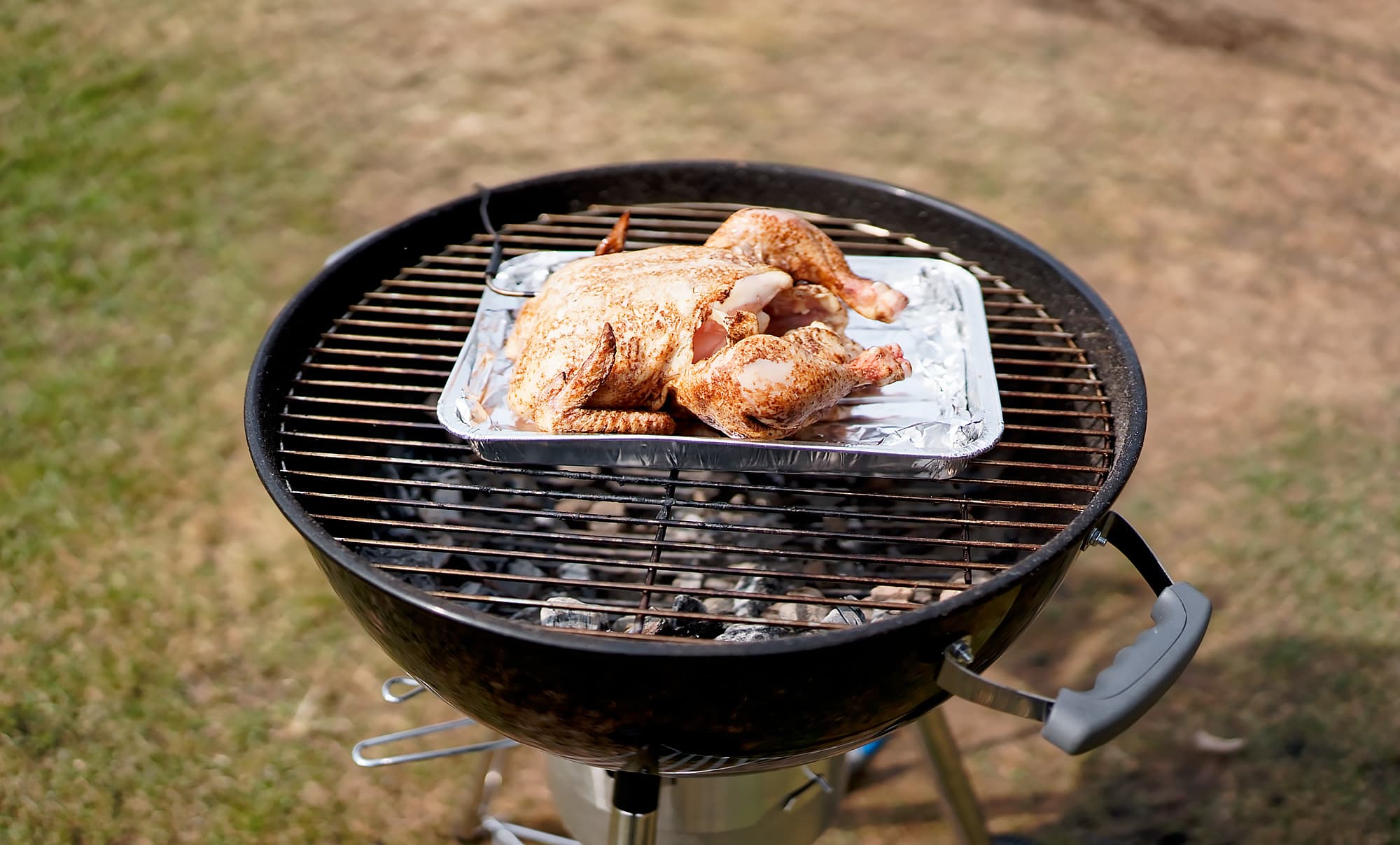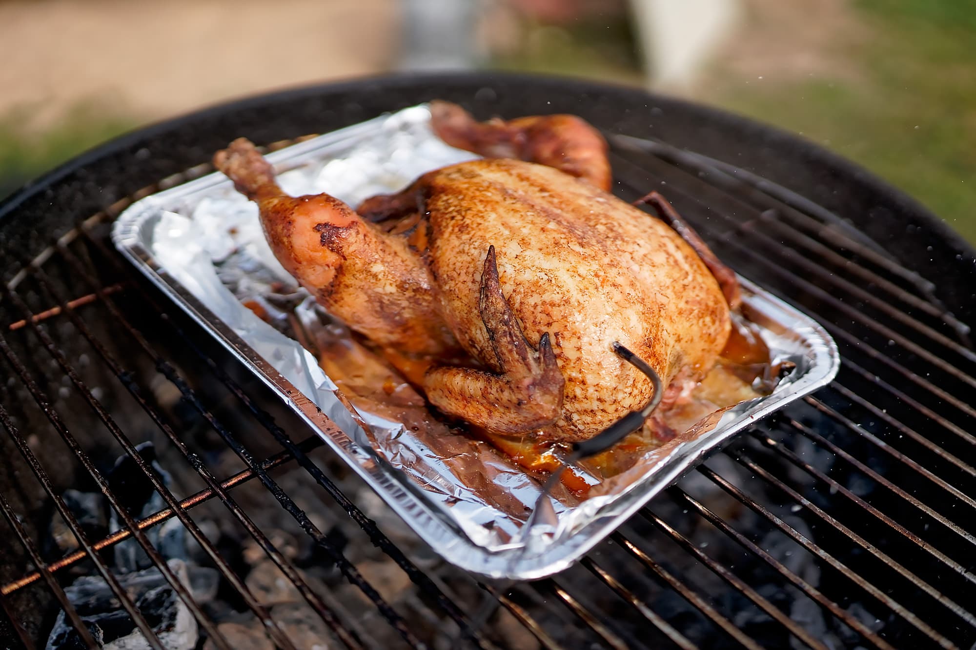 Поддон поставили на решетку с уже не очень горячими углями.