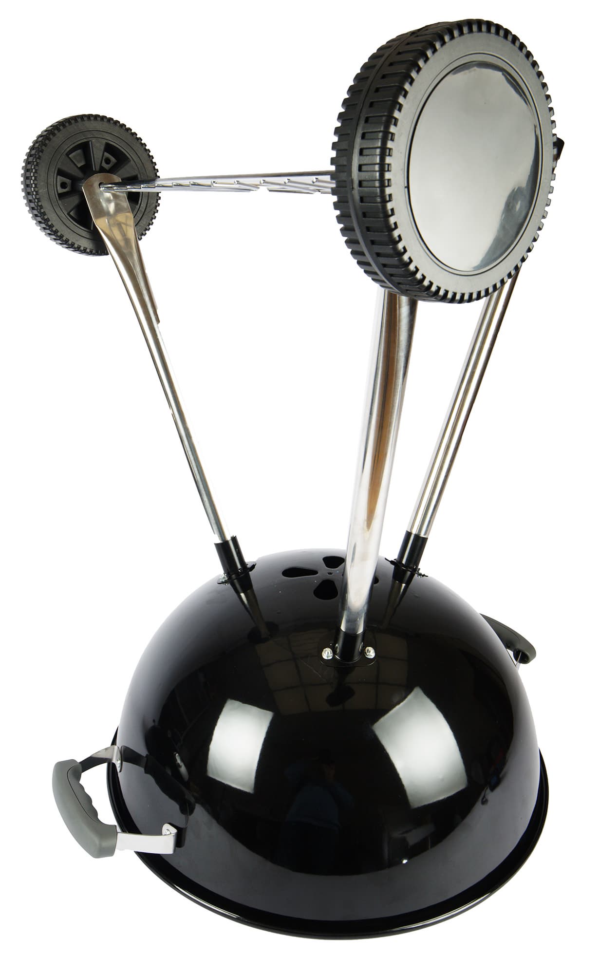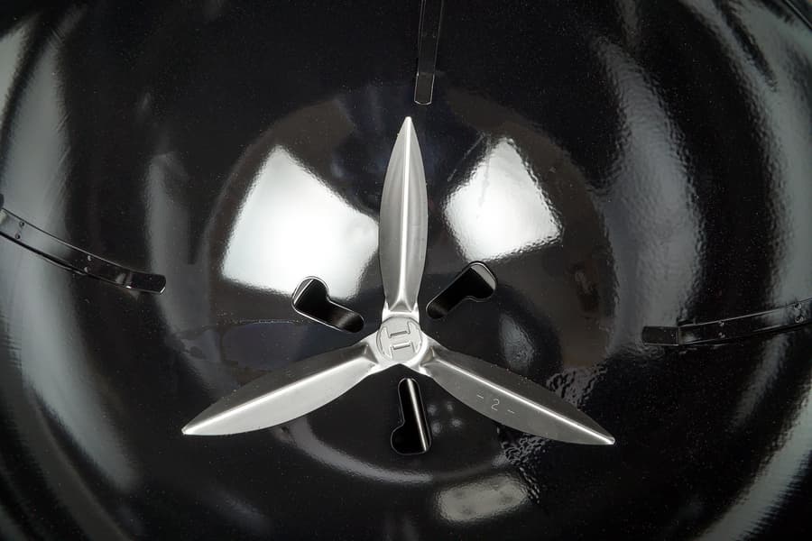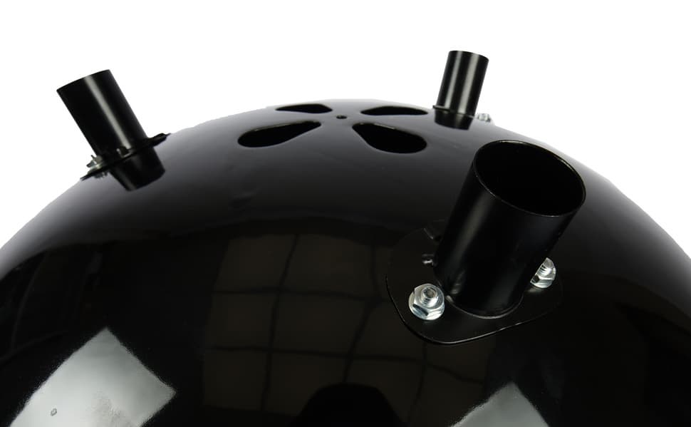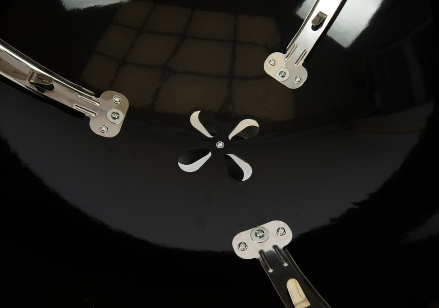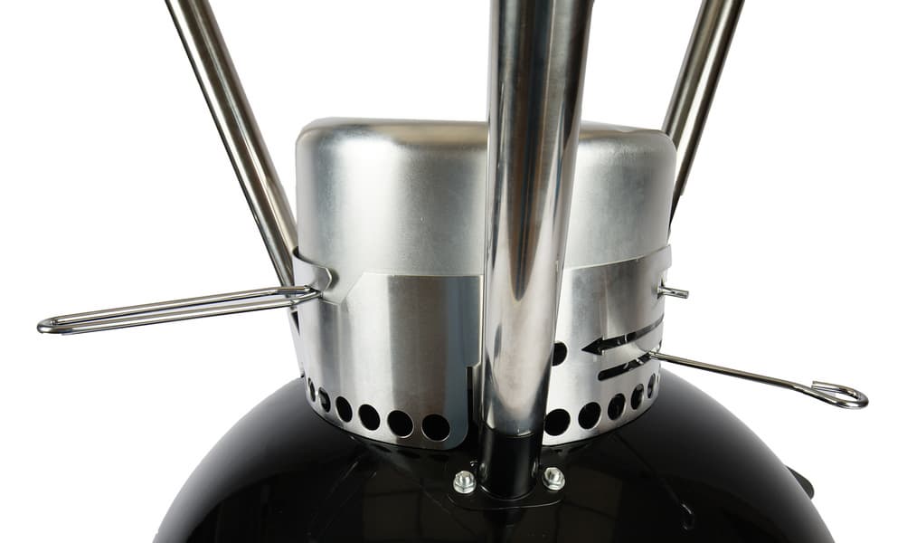 Если сравнивать напрямую с веберовской продукцией, то везде немножко «труба пониже и дым пожиже»: прутья у решеток потоньше, зольник и кронштейн, в который он вставляется, менее монументальны, полушария выполнены из примерно 1,5-мм стали (мы посчитали, что до 2 мм толщина дошла за счет эмали). Нижняя заслонка представляет собой просто увеличенную копию верхней, а не три здоровенных лепестка, выполняющих к тому же роль сгребателей золы, как у Master-Touch.