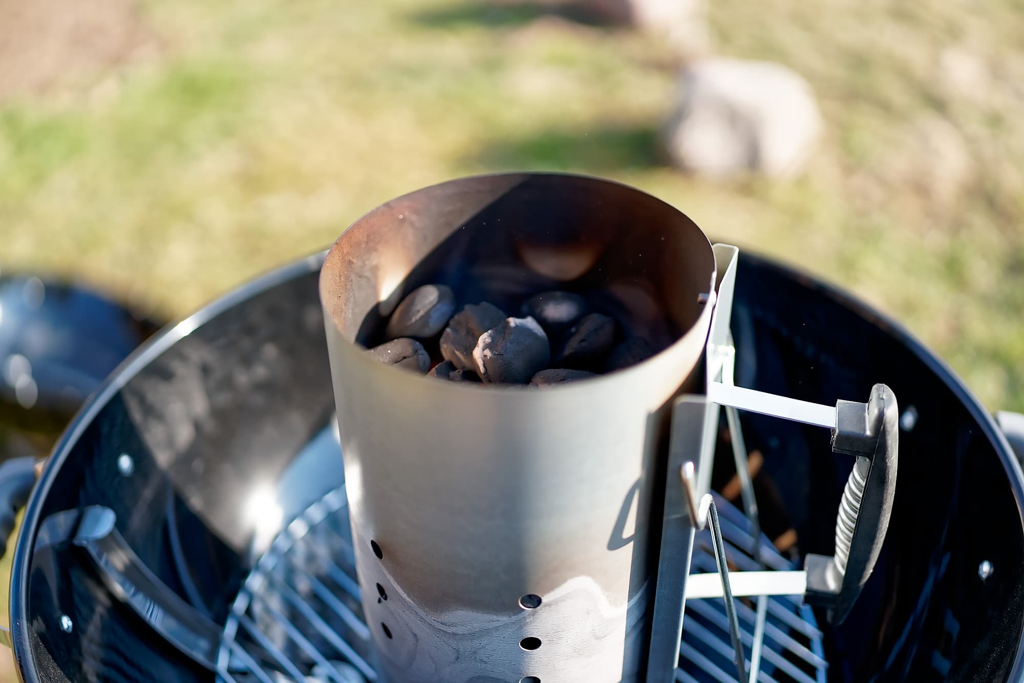 Напомним основное правило розжига углей в стартере: не нужно давать известному земноводному вас задушить и экономить «зазря сгорающие» нижние угли. Высыпать содержимое стартера в гриль следует только после того, как на самых верхних углях образовались характерные белые «подпалины» — не раньше!