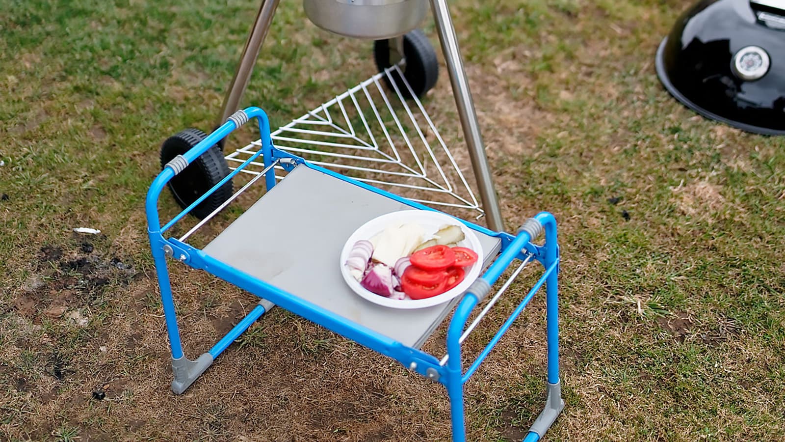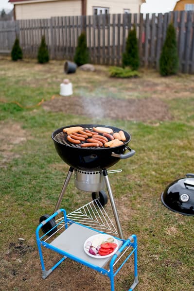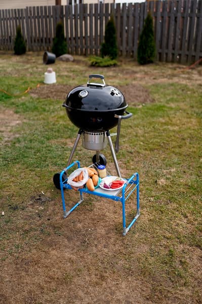На этот момент стало ясно, что столик или раскладные полочки нашему грилю очень бы не помешали, но в целом процесс идет без проблем — чем крыльцо не столик?