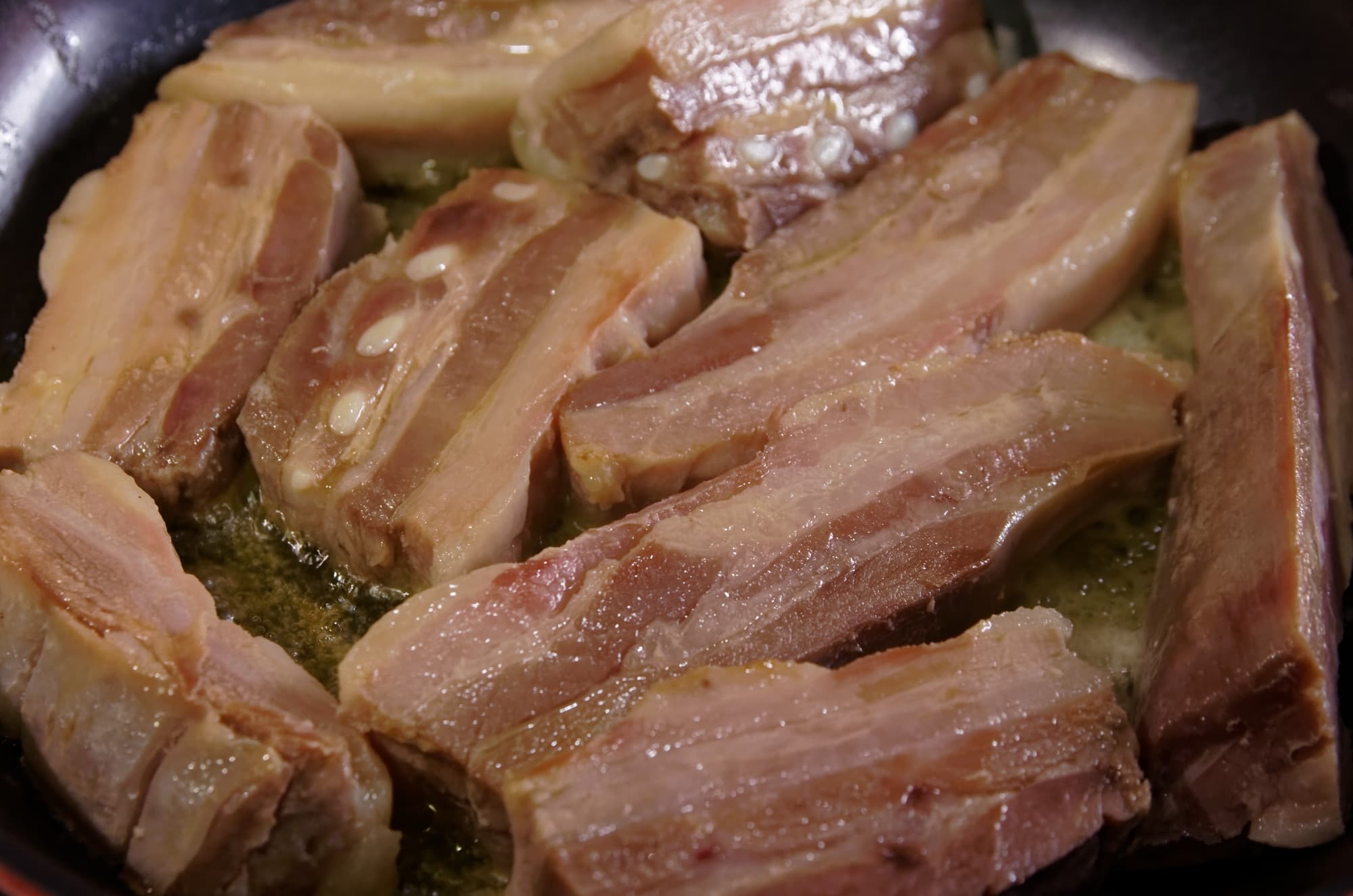 Мы засолили несколько фрагментов свиной грудинки: ребрышек и той части, где костей нет, а встречаются лишь хрящики.