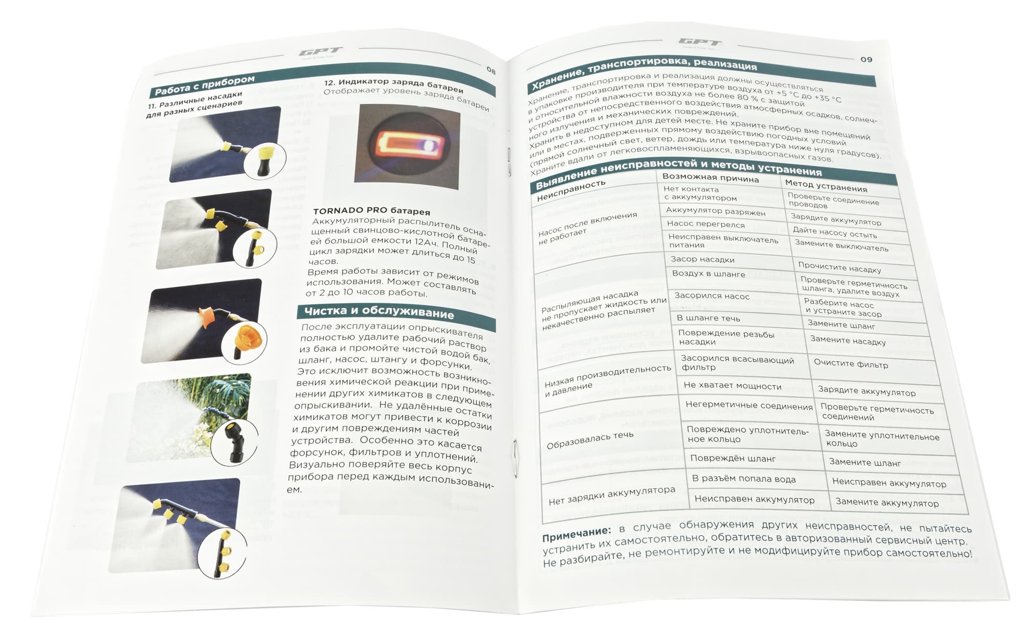 В руководстве по эксплуатации упор сделан на описательную часть: конструкция, комплектация, инструкции по соединению частей прибора друг с другом , меры предосторожности, условия хранения и транспортировки... Присутствует раздел, посвященный устранению несложных неисправностей и поломок.