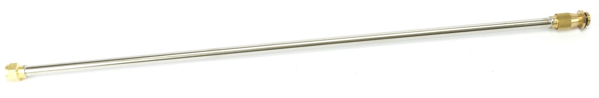 Телескопическая трубка из нержавеющей стали крепится к шлангу с помощью латунных резьбовых соединений. Длину трубки можно регулировать в пределах от 50 до 95 см. Перед трубкой устанавливается несложный металлический запорный кран.