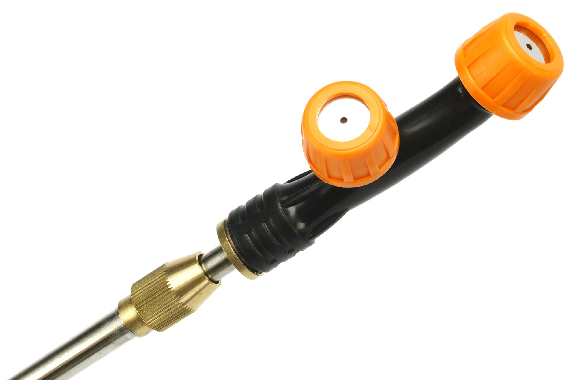 Два распылителя в два раза больше, чем один. Площадь обработки увеличивается вдвое без заметного уменьшения дальности опрыскивания.