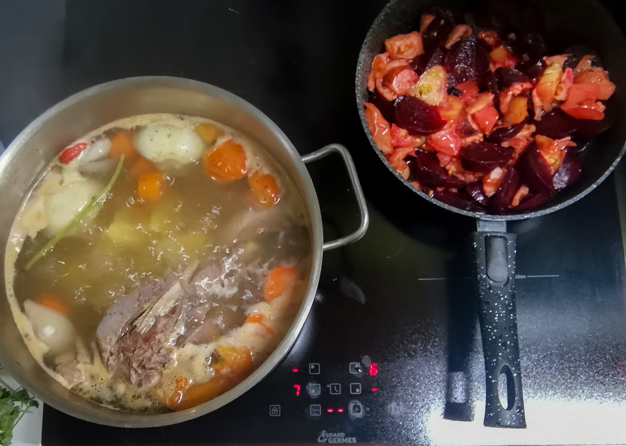 В процессе приготовления борща в такой большой емкости на плите еще оставалось место для одной большой сковородки и маленького ковшика или двух небольших кастрюль.