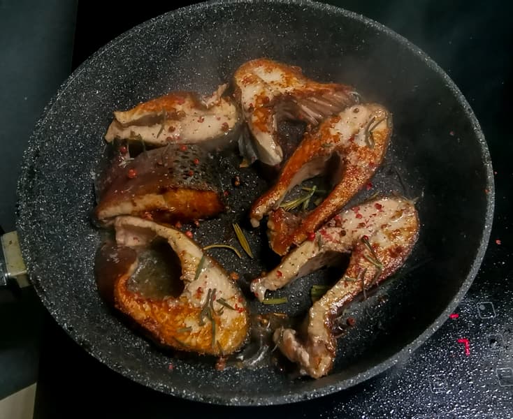 Форель хорошо прожарилась снаружи и совершенно не потеряла сок.