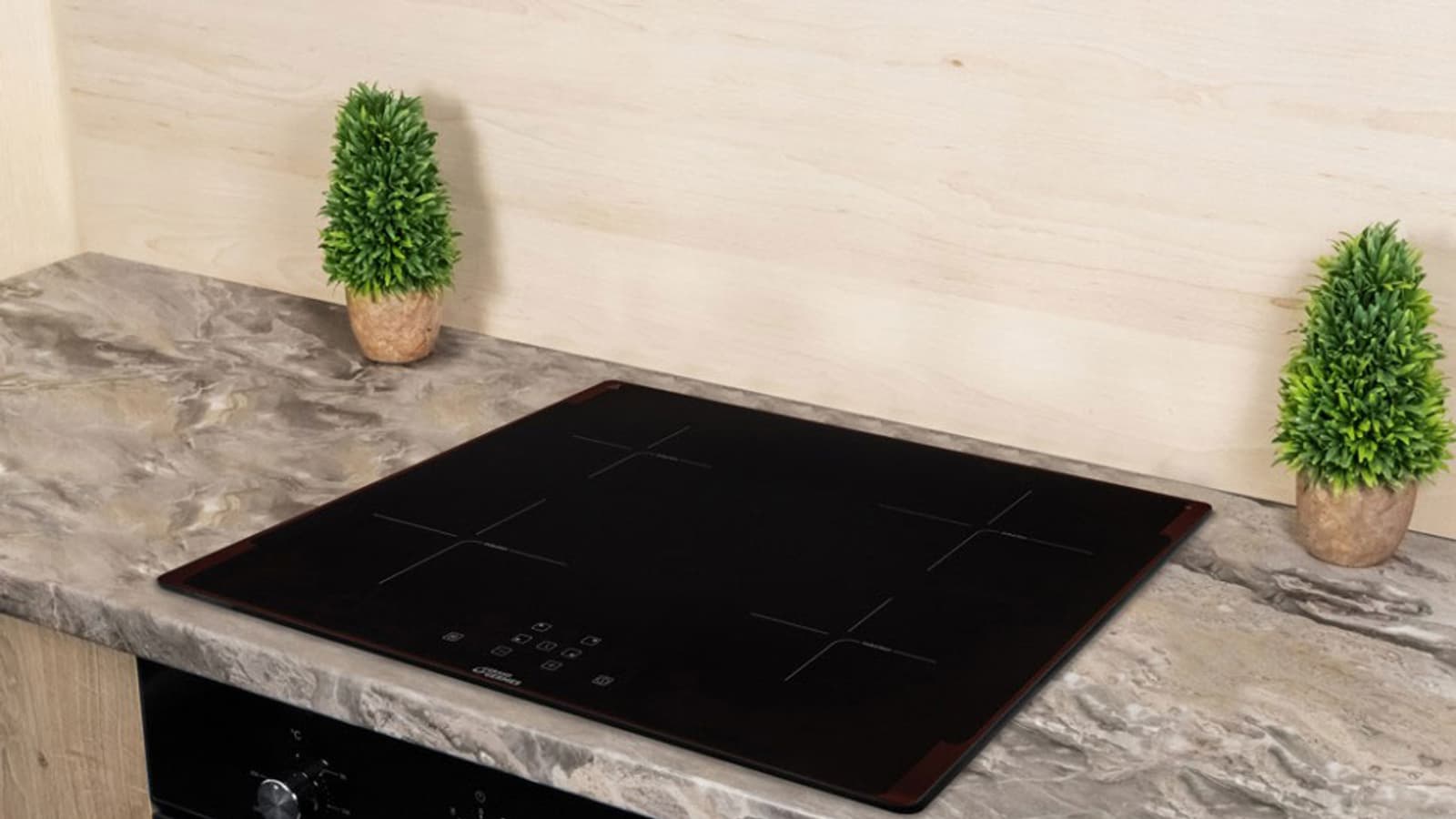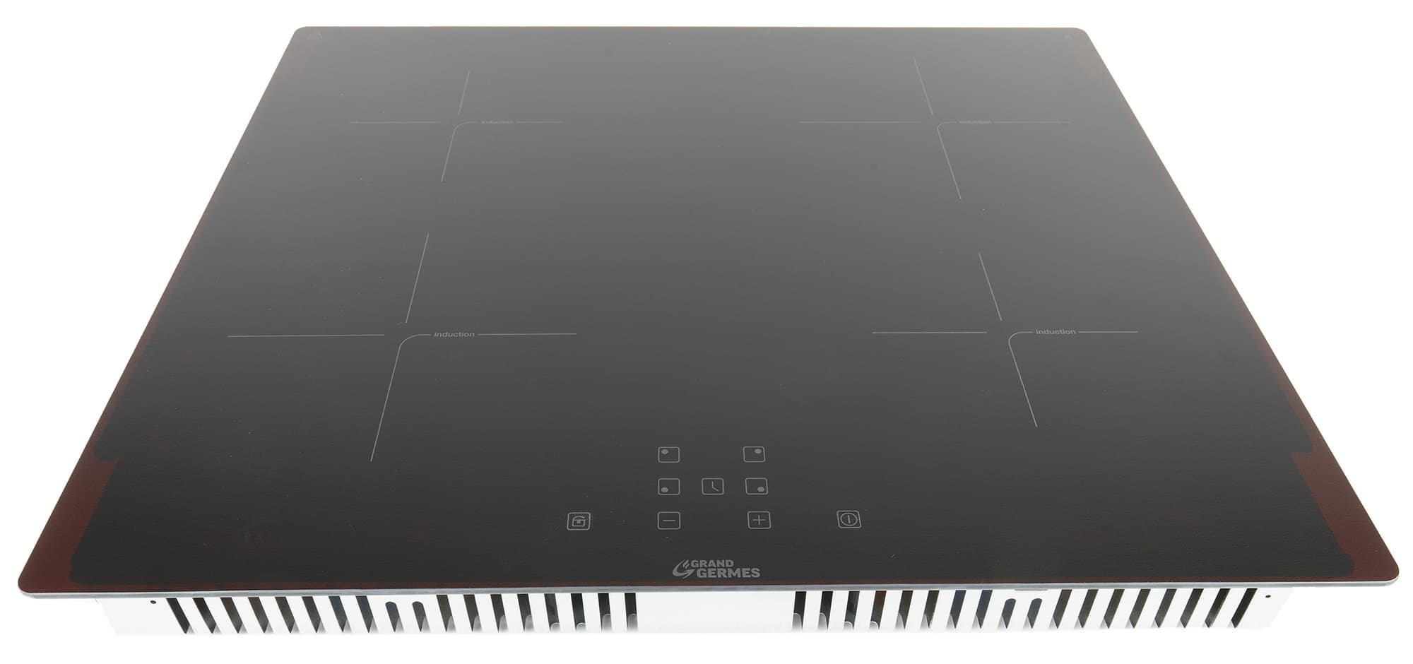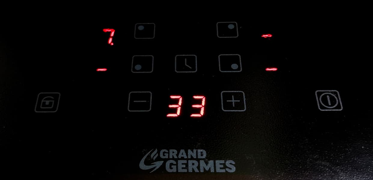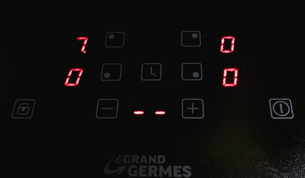 Grand Germes HBI-60BK-BX — индукционная варочная поверхность с очень простым управлением. Полуматовое, глубоко черное рифленое стекло визуально скрадывает брызги и небольшие пятна, делает уборку проще и защищает от образования царапин.