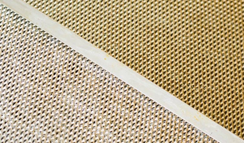 На фотографии представлена решетка вытяжки в процессе очистки. Процесс занял довольно продолжительное время (около 12-15 минут на очистку одной решетки). Однако результат нас порадовал и продемонстрировал, что и с этой задачей прибор справился вполне успешно.