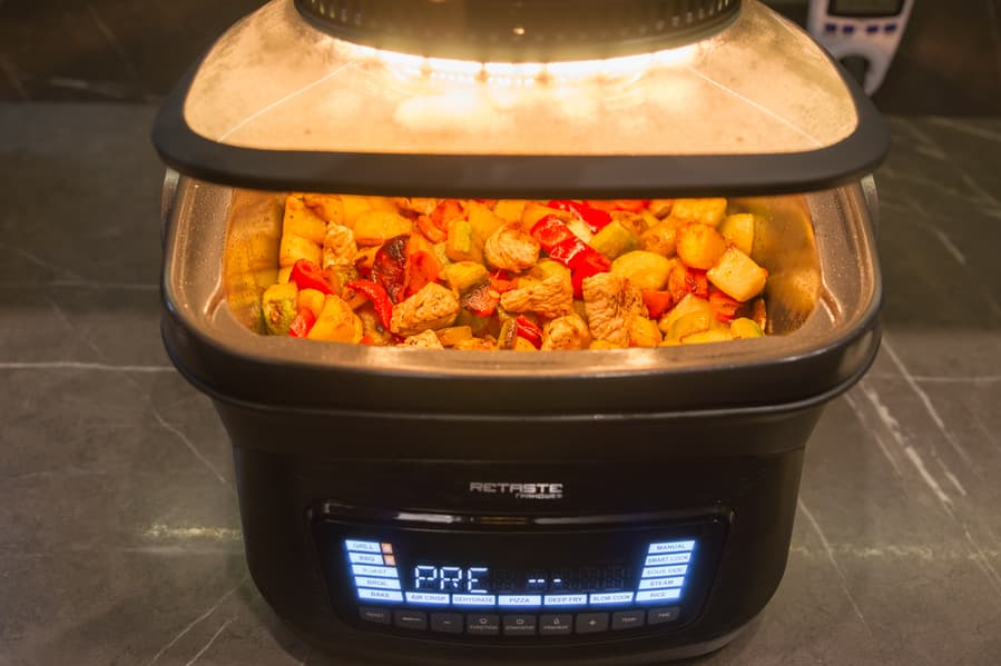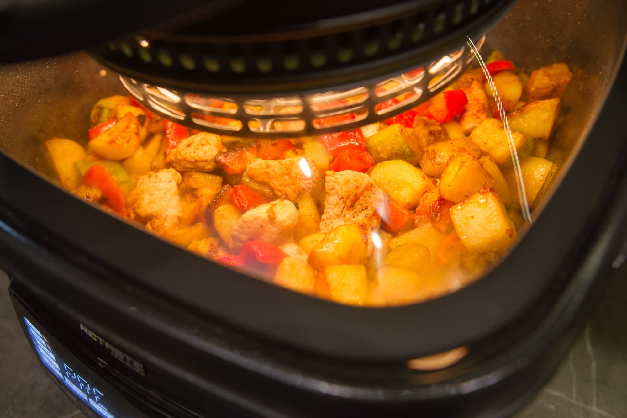 Аэрогриль ГрандШеф Retaste GRND-001 пробыл с нами несколько недель и действительно смог заменить собой большую часть кухонной техники, которая обычно используется при приготовлении еды на каждый день. Устройство имеет широкий выбор режимов и достаточный диапазон установки параметров для любых сценариев: от медленного томления на низкой температуре до быстрой обжарки и качественного запекания с максимальным нагревом.
