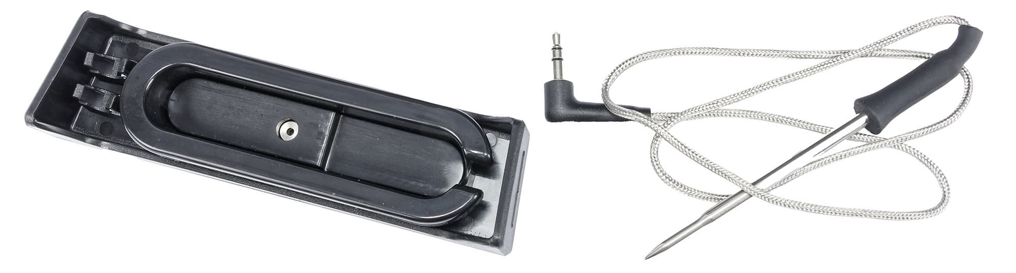 Сенсор с изображением термощупа, при подключении его к корпусу, позволяет выбрать одну из четырех функций: Говядина, Курица, Свинина или Рыба, а затем в каждой выбрать необходимую степень прожарки. В Говядине 9 степеней прожарки, (по 2 в Rare, Medium rare, Medium, Medium well и 1 в Well done), у Курицы 1 степень, у Свинины и у Рыбы — по 4.