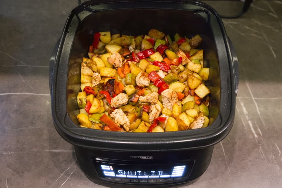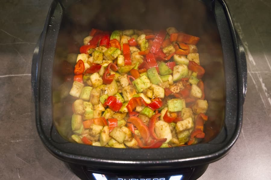 Немного неправильно, на наш взгляд, в инструкции описан процесс приготовления в режиме Sous Vide. Для начала в тексте руководства предлагается установить в чашу решетку, а затем выложить на нее пакеты с продуктами и залить емкость водой до максимальной отметки. Тут мы бы поспорили. Практической пользы от решетки в этом деле никакой, а вот место она съедает — уложить на нее можно только пару упаковок высотой до 2,5 см. И это при такой большой чаше? В общем, решетку было решено не использовать вовсе. На результате ее отсутствие никак не отразилось.