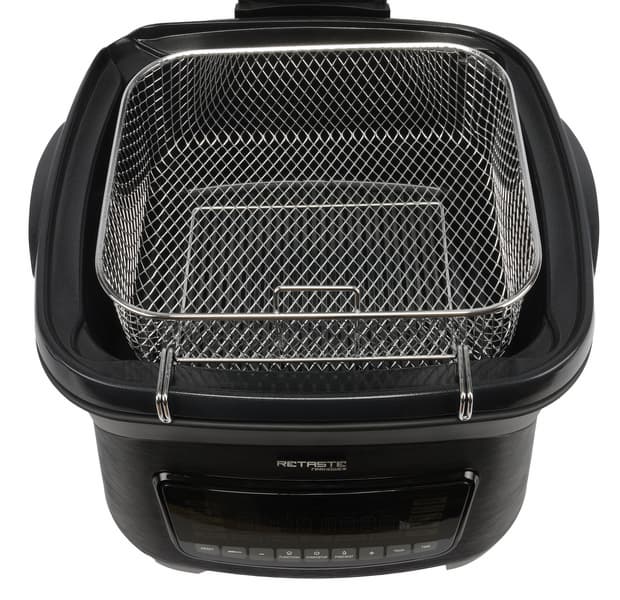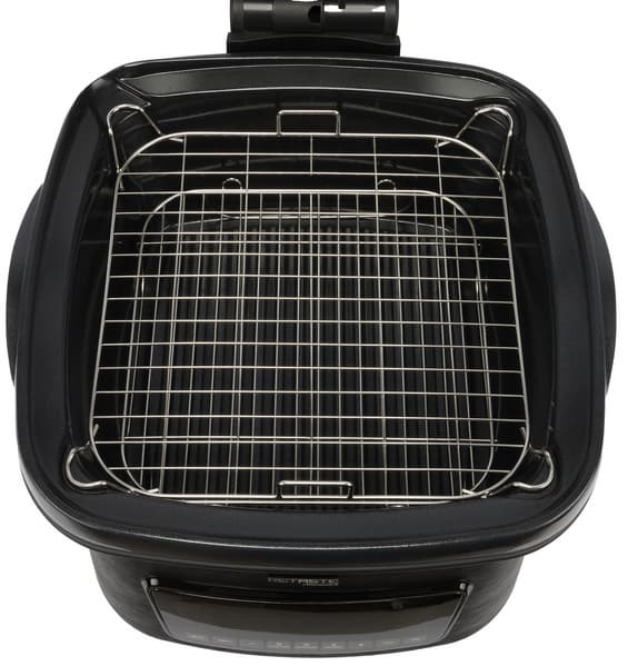 Внутрь можно установить дополнительные аксессуары: корзину для фритюра со съемной ручкой, одну или сразу обе решетки.