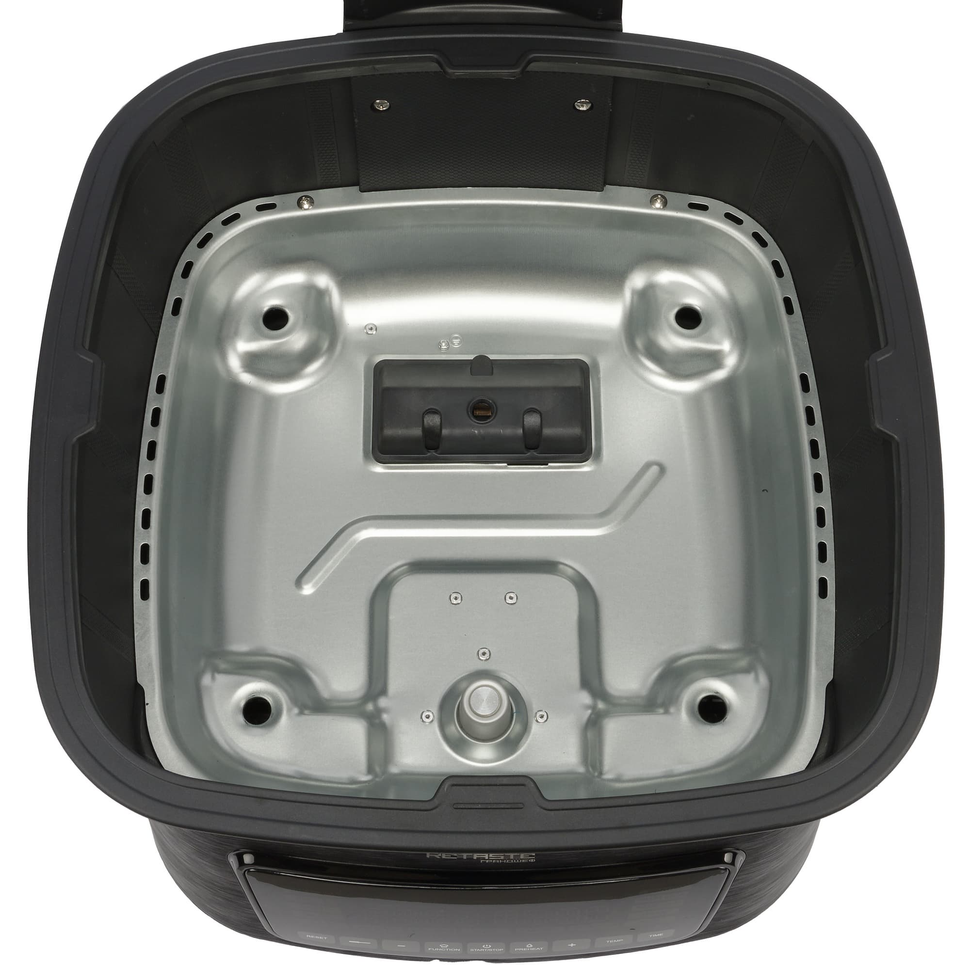 Стильный солидный корпус имеет аккуратную сборку и качественную термоизоляцию. Массивная 8-литровая чаша из толстого прочного металла покрыта идеально гладкой антипригарной керамикой, что не дает частичкам пищи пригорать в процессе готовки и сильно облегчает уход за емкостью. Нужно только помнить, что с такими габаритами емкость поместится не в каждую раковину. В целом уход за прибором элементарен, не понравилось нам только оттирать основную стеклянную крышку — именно оттирать, так как мыть ее под краном категорически нельзя (нагревательный элемент с подсветкой не снимаются). При этом саму подсветку и прозрачность крышки мы отметили как плюс — наблюдать за происходящим в камере через стекло очень удобно.