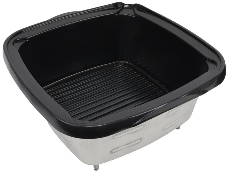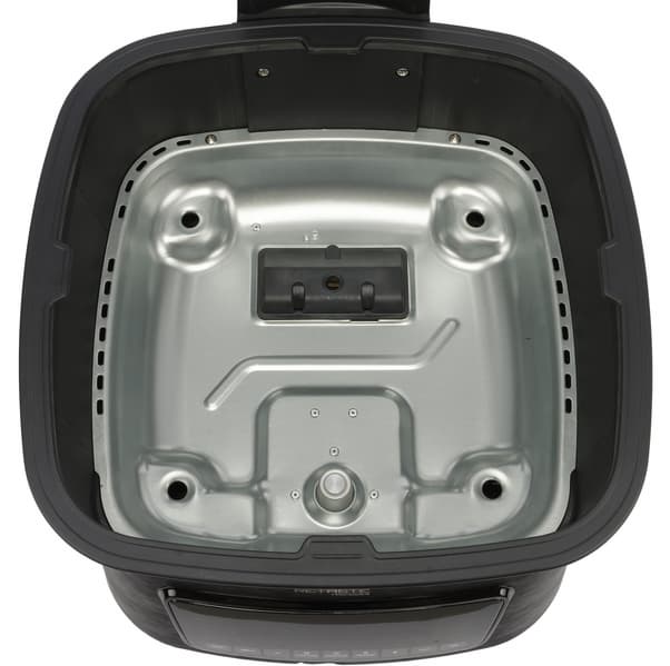 Корпус аэрогриля достаточно протирать слегка влажной мягкой тканью. Съемную чашу следует мыть вручную, используя мягкую губку и нейтральное жидкое моющее средство. Тут стоит упомянуть о размерах чаши — ширина и глубина по внешним стенкам составляет 33,5 и 35 см, а высота с учетом ножек равна 16 см. Не в каждую раковину поместится настолько крупная емкость.