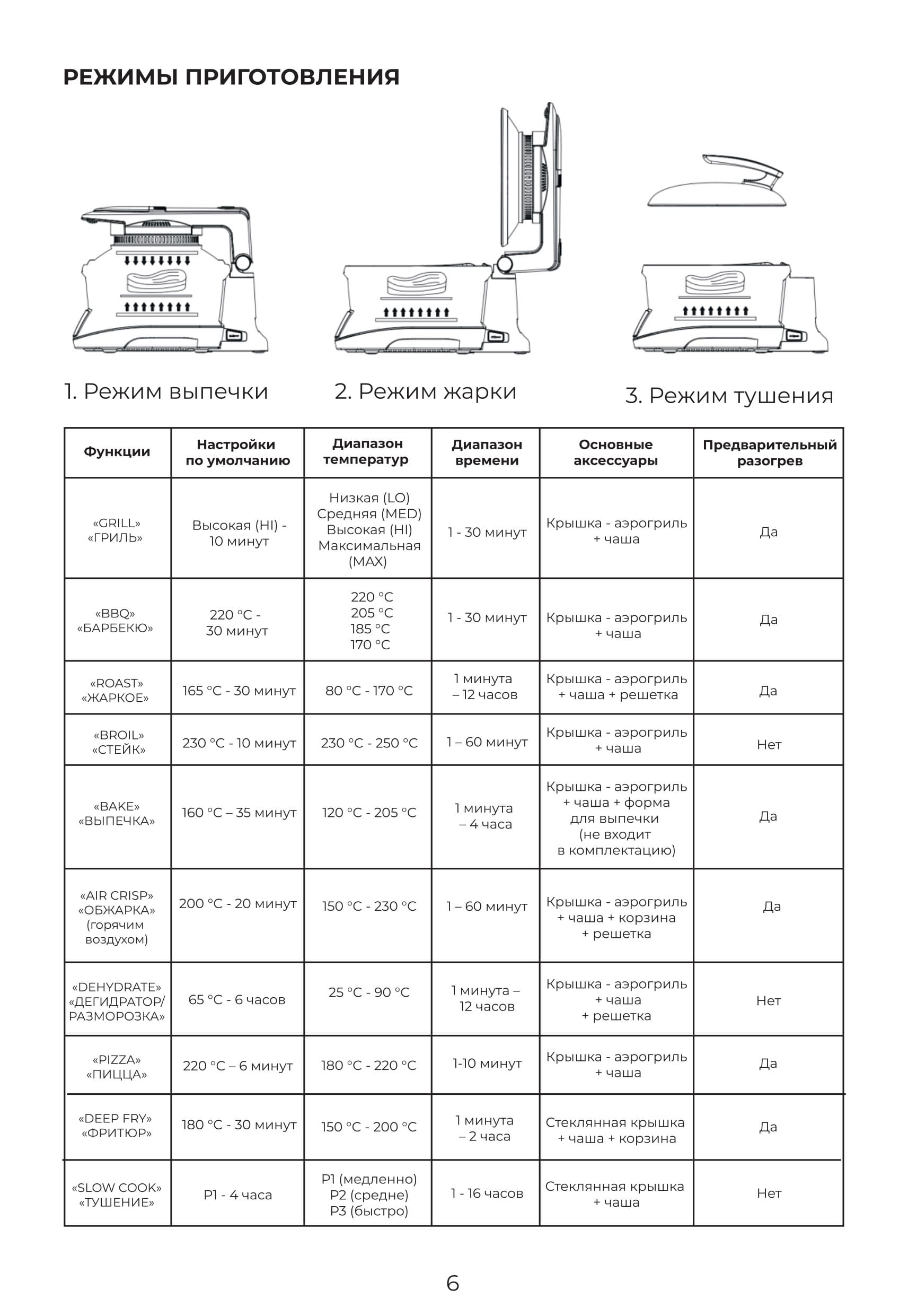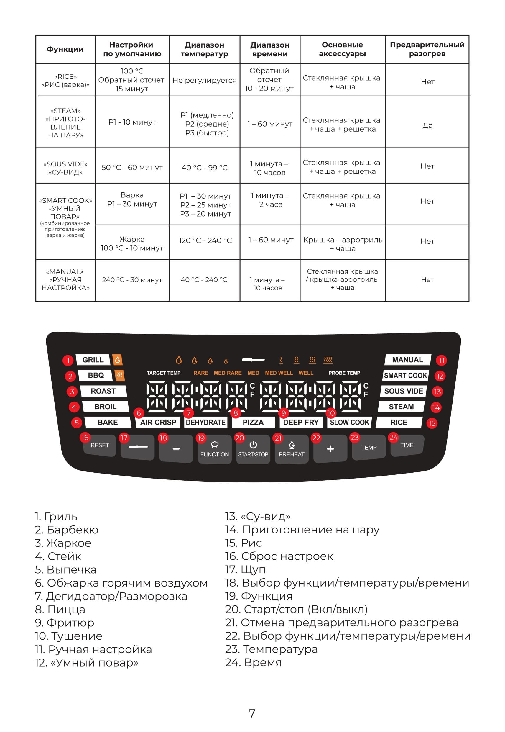 | Регулировка температуры приготовления | от 25 до 240 °C, с шагом 1 °C |