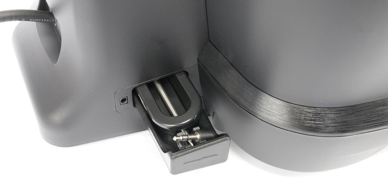 Сетевой кабель выходит из нижней части корпуса с тыльной стороны. Рядом сбоку организован выдвигающийся контейнер с термощупом. Очень удобно, деталь не потеряется где-то в кухонных шкафчиках и всегда будет под рукой.
