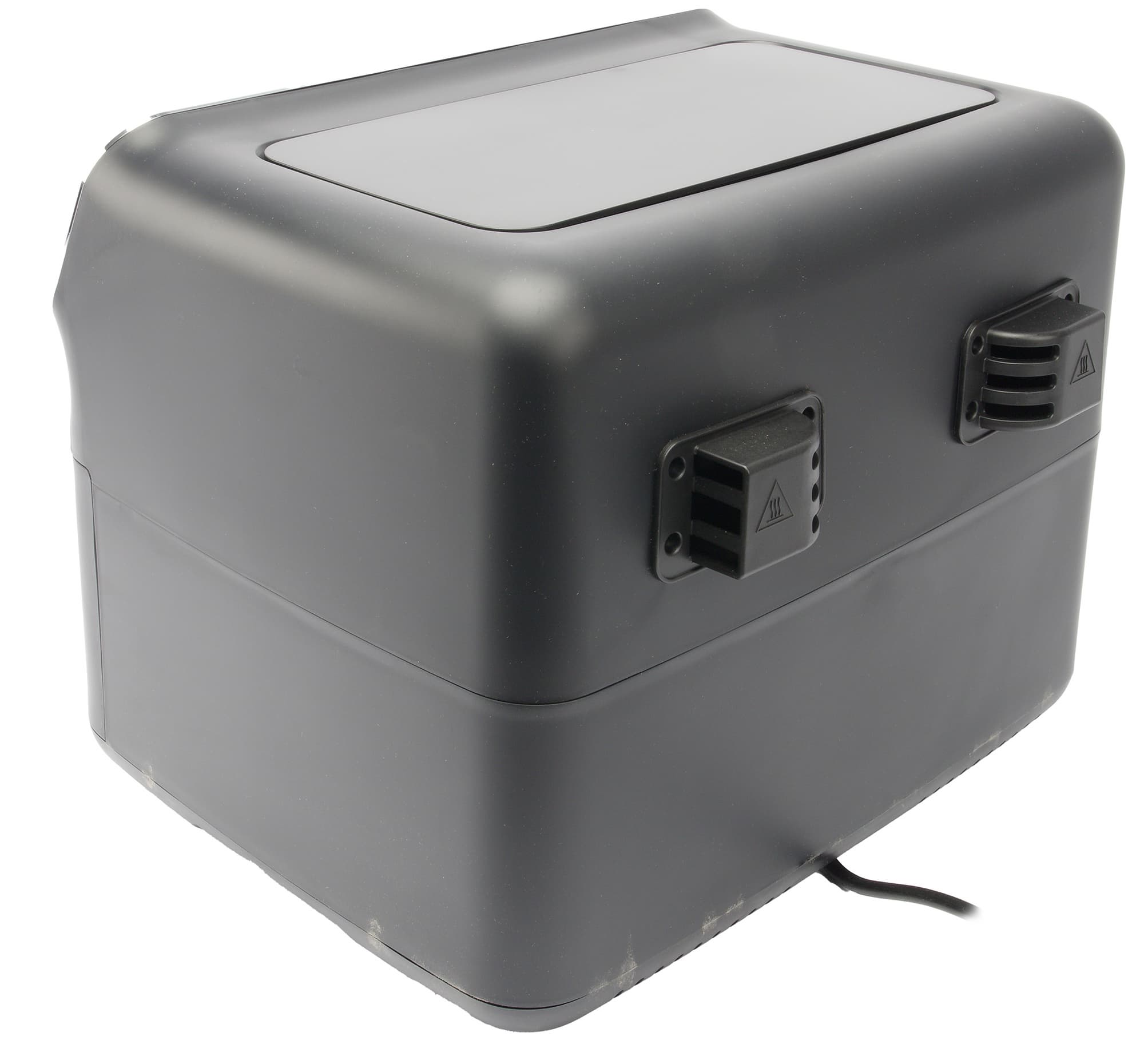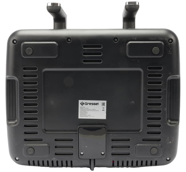 Аэрогриль Gressel GAF-1825 выглядит весьма брутально. У него вытянутая вширь форма с закругленным углами, напоминающая буханку хлеба. Корпус и ручки устройства выполнены из матового черного пластика, панель управления сделана из глянцевого пластика и размещена чуть под наклоном относительно всего корпуса. Также панель управления и ручки обрамлены серебристыми каемками, создающими простые, но стильные акценты.