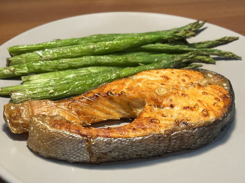 Стейк форели и спаржа