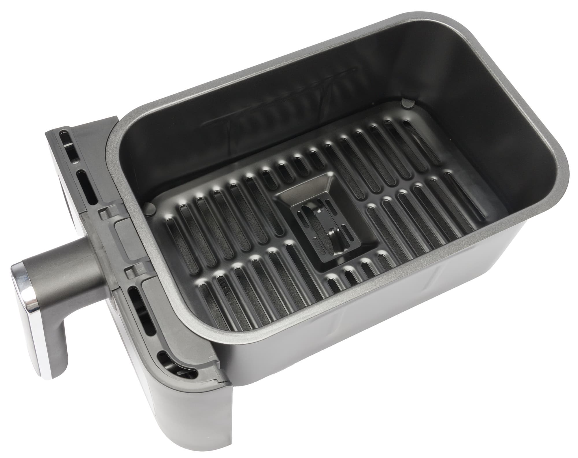 В поддон вставляется решетка для стекания лишнего масла и циркуляции горячего воздуха. Она представляет собой металлическую пластину с перфорацией и антипригарным покрытием.
