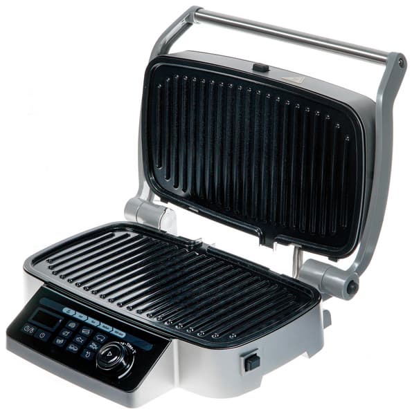 | Redmond SteakMaster RGM-M817D | 1800-2000 Вт | 31×23,5 см | 90—230 °C с шагом 5 °C | отсек для хранения шнура, дисплей, независимая регулировка температуры верхней и нижней панелей, автоотключение |