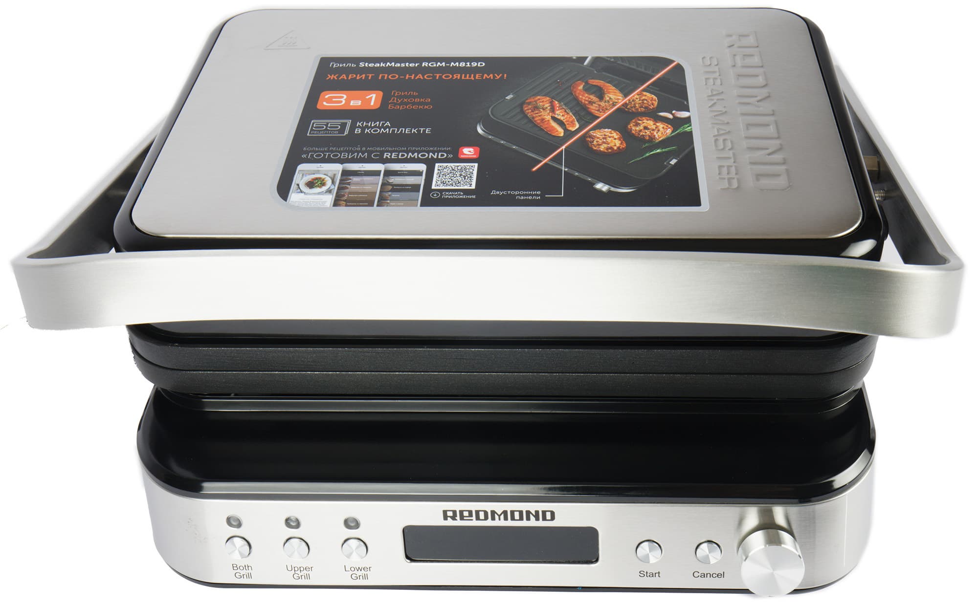 | Redmond SteakMaster RGM-M819D | 2000 Вт | 32×22 см | 80—230 °C | − | двусторонние съемные панели, возможность нагрева одной панели, мини-духовка |