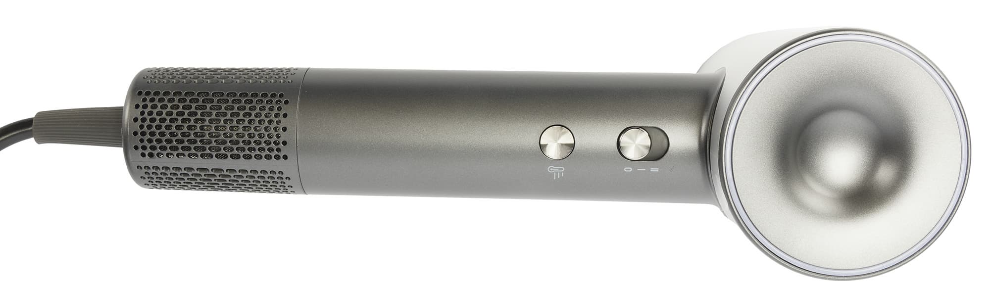 Фен нейтральной расцветки выглядит современно, аккуратно и стильно. Он оснащен мощным двигателем, имеет простое управление с наглядной цветовой индикацией температуры и умеренный уровень громкости. К плюсам отнесем также крепление на стену с магнитной фиксацией для комфортного хранения и, конечно, легкость и компактность корпуса, что делает его идеальным для путешествий.