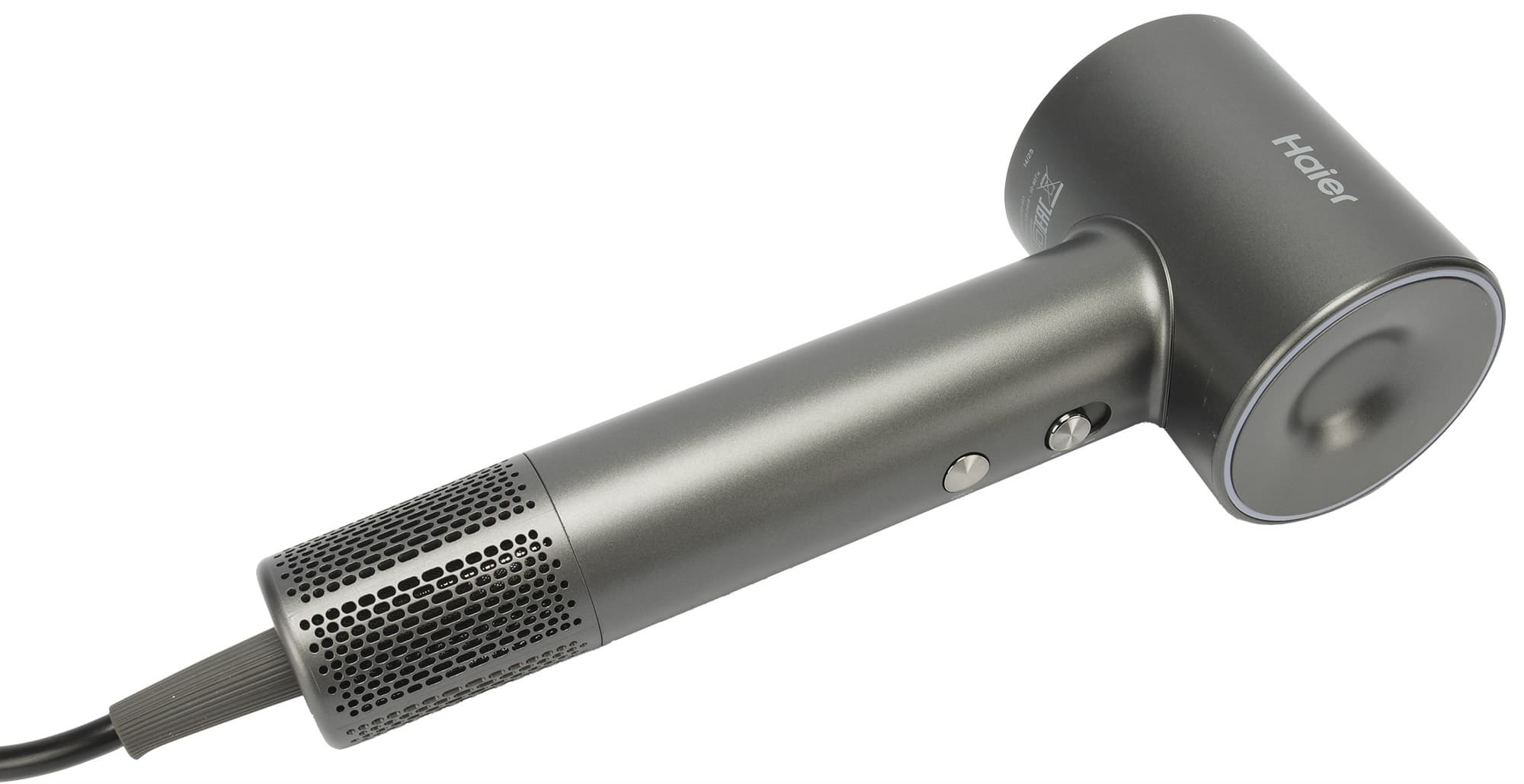 Фен Haier HHD-603 — компактный прибор средней ценовой категории с очень неплохими техническими характеристиками. Эта стильная модель оснащена функцией ионизации, удобным управлением с цветовой индикацией и комплектуется насадкой в виде концентратора с магнитным креплением.