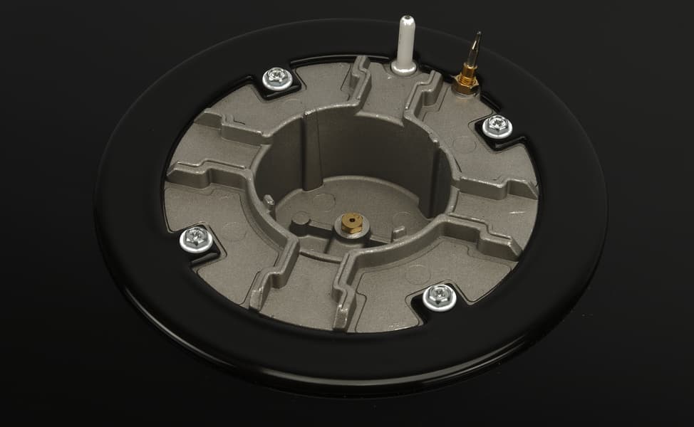 Каждая конфорка оснащена электроподжигом, газ-контролем и металлической накладкой для защиты от подтекания жидкости внутрь.