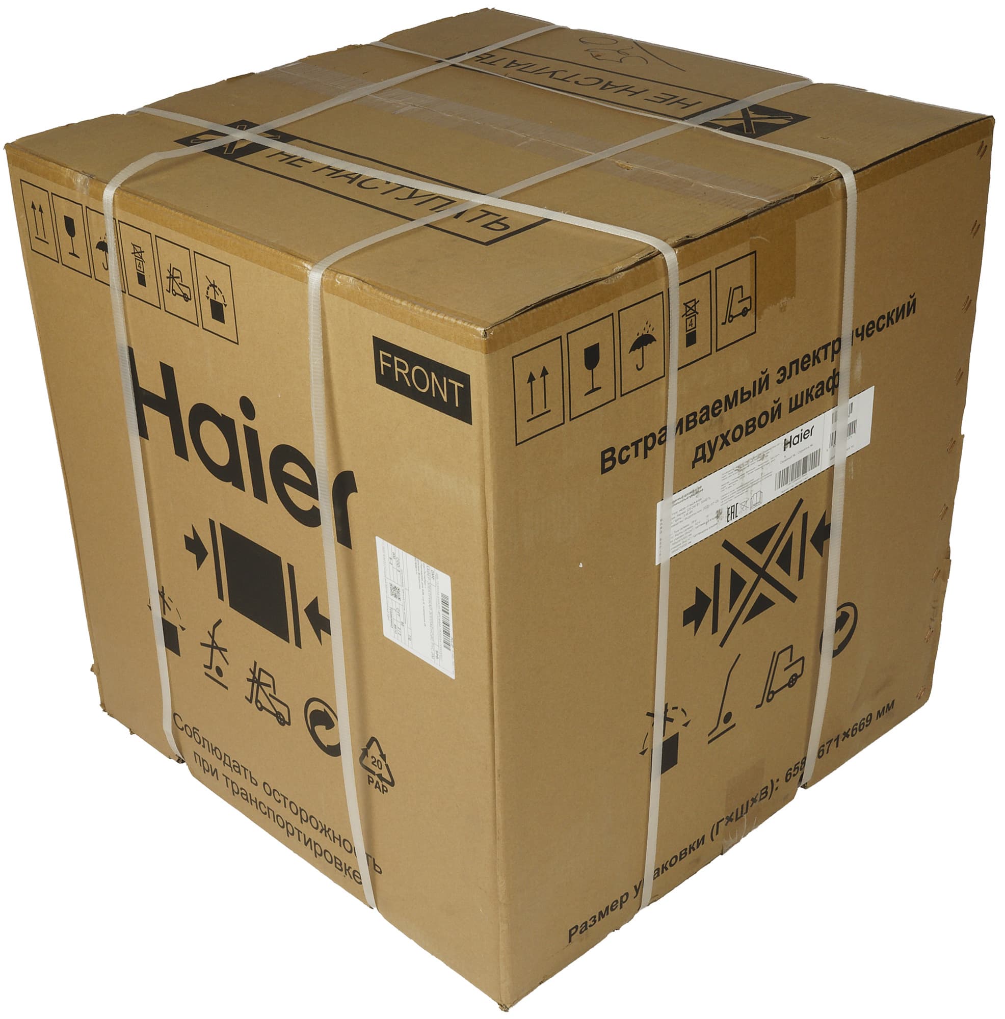 Встраиваемый духовой шкаф прибыл к нам на тестирование в коробке из прочного картона. На гранях упаковки размещены: логотип компании, транспортировочные значки и наклейки с наименованием модели, ее техническими характеристиками и информацией о производителе.