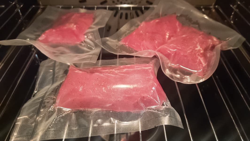 В режиме Приготовление в вакууме при 62 °C мясо готовилось ровно 3 часа.