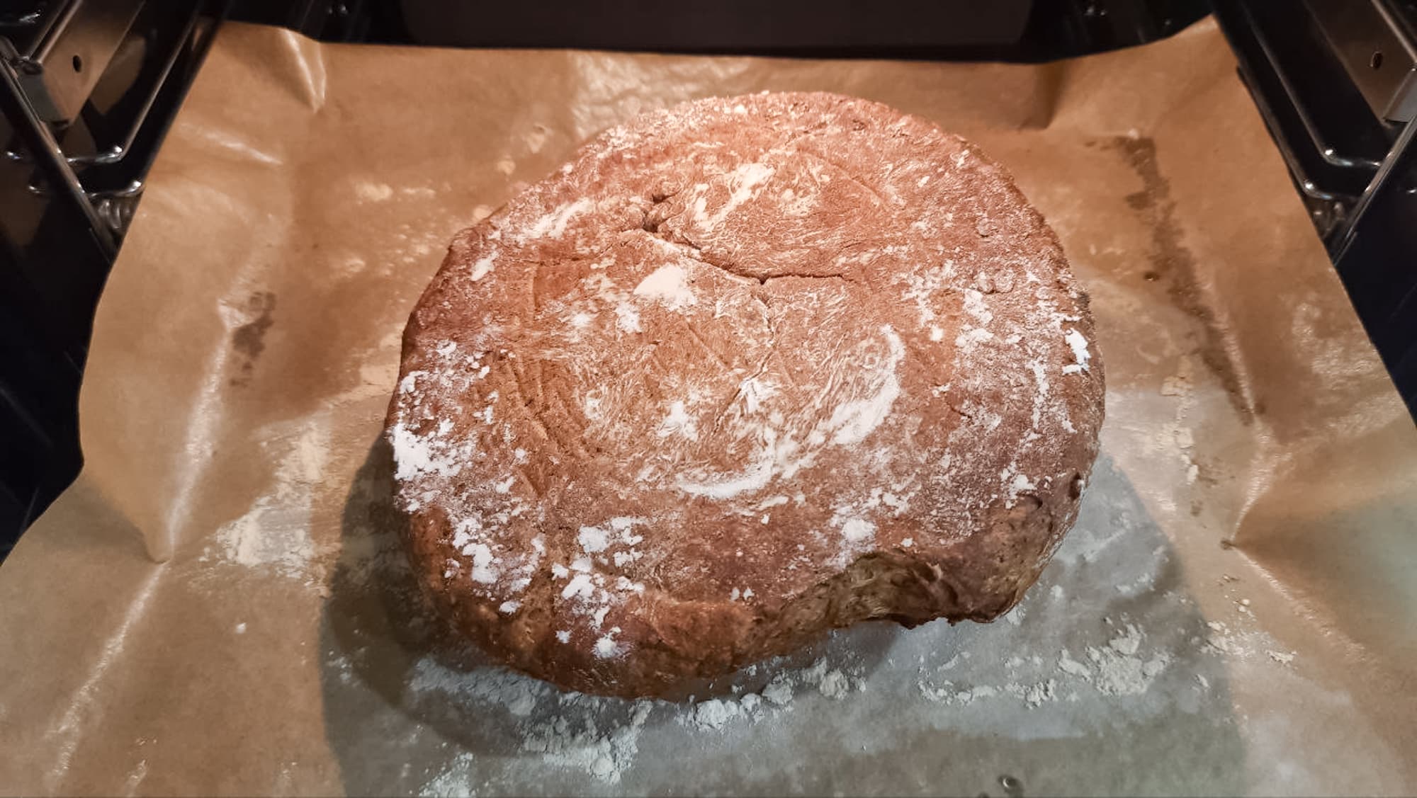 Всего для полной готовности понадобилось 2 часа. По достижении заданной температуры раздался звуковой сигнал, и духовка выключилась. В процессе мы дважды подавали пар вручную.