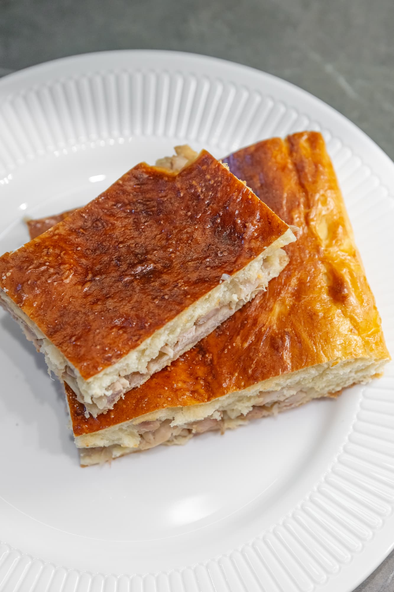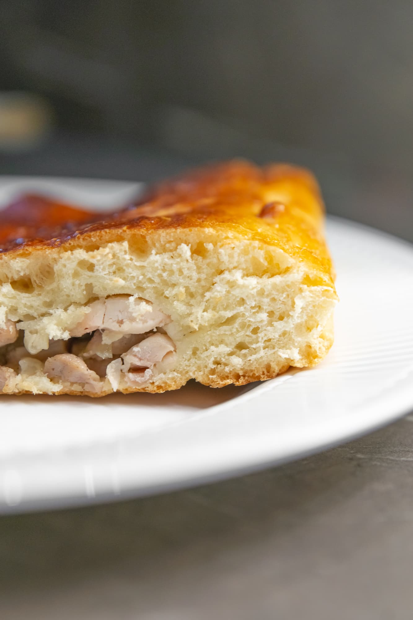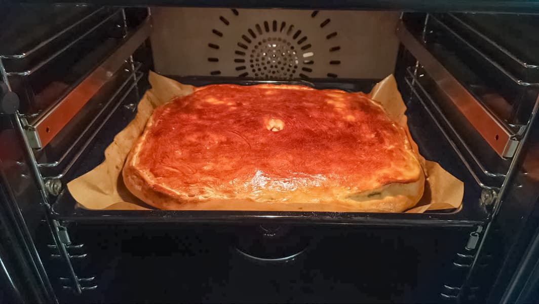 Корочка снизу хорошо поджарилась, нигде ничего не подгорело. Внутри тесто пропеклось идеально, а верхушка получилась с превосходной тончайшей корочкой.