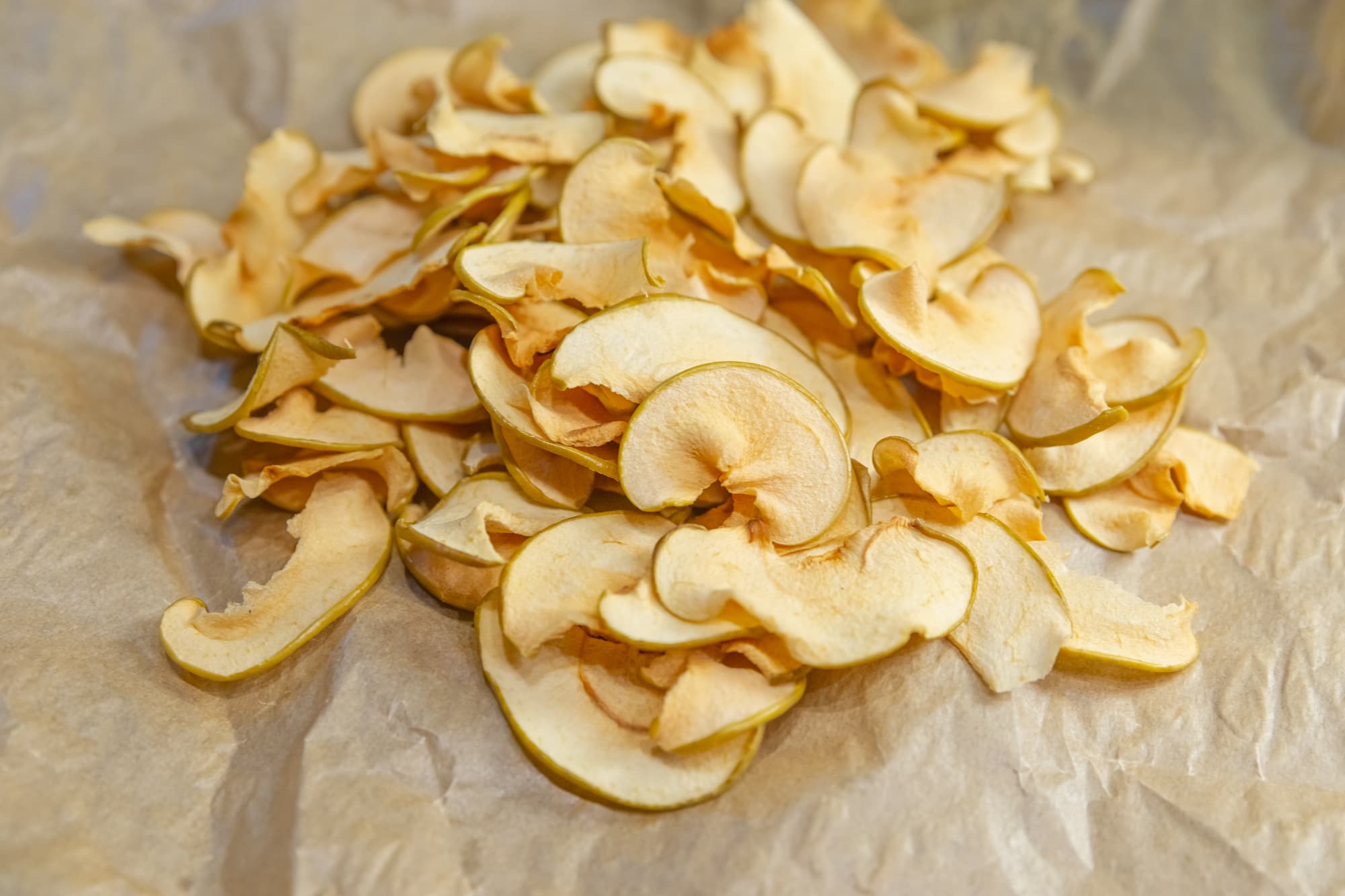 Высушенными, но пластичными дольки стали уже через 3 часа. Еще 30 минут понадобилось, чтобы сделать их хрустящими.