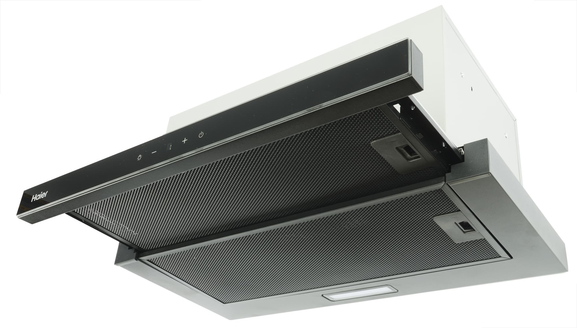 Во-первых, они являются исключительно встраиваемыми. Пользователь получает доступ лишь к панели управления, расположенной на выдвижной части прибора, а также к нижней плоскости, в которой расположены два антижировых фильтра. Все остальное оказывается спрятано за фасадом кухонного гарнитура.