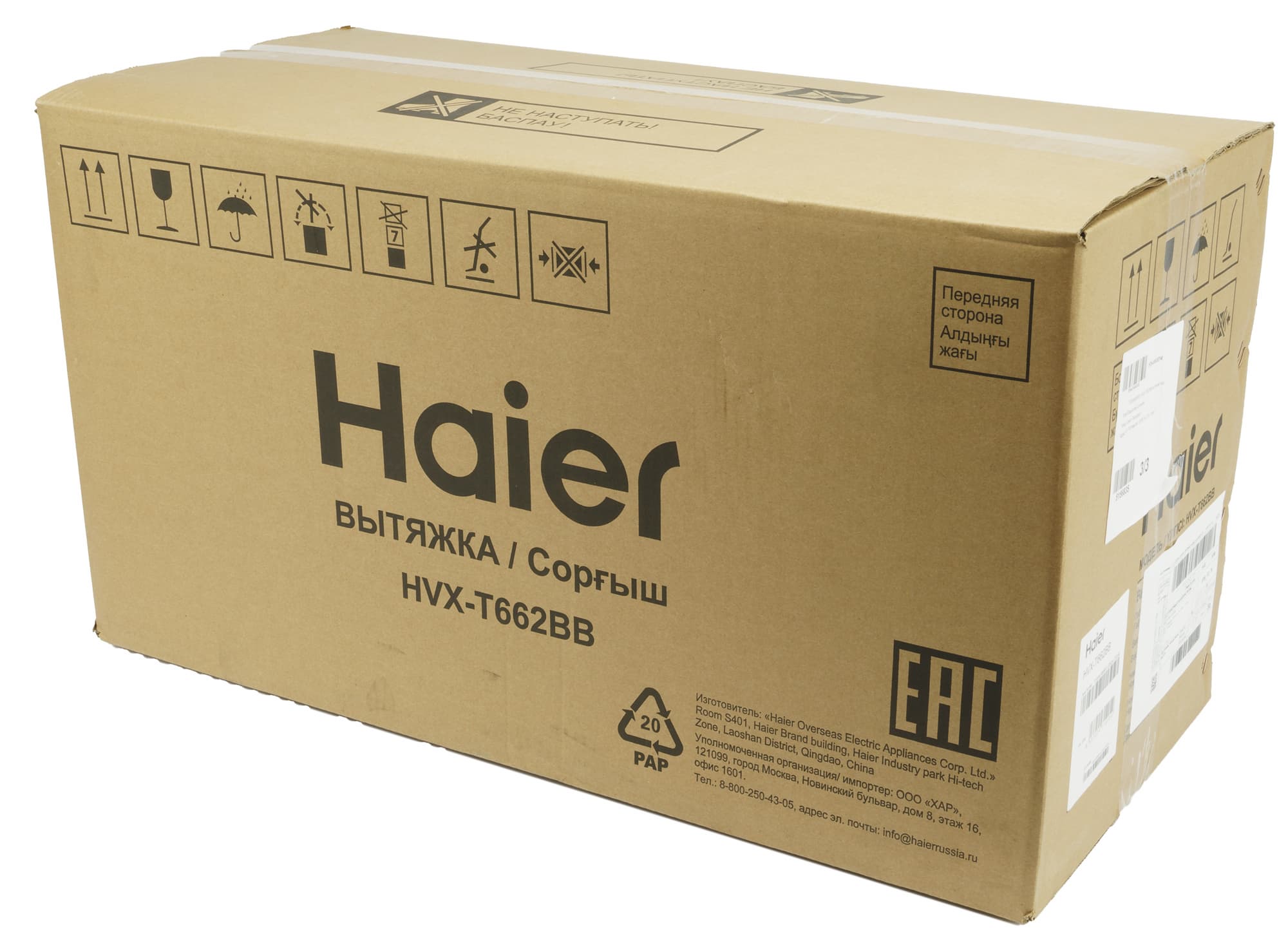 Вытяжка прибыла к нам в коричневой картонной коробке. На передней стороне упаковки — название бренда и номер модели. Просто и лаконично. Как мы видим, цель такой упаковки — доставить содержимое в целости и сохранности до места назначения. Выставлять ее на витрину никто не собирается.