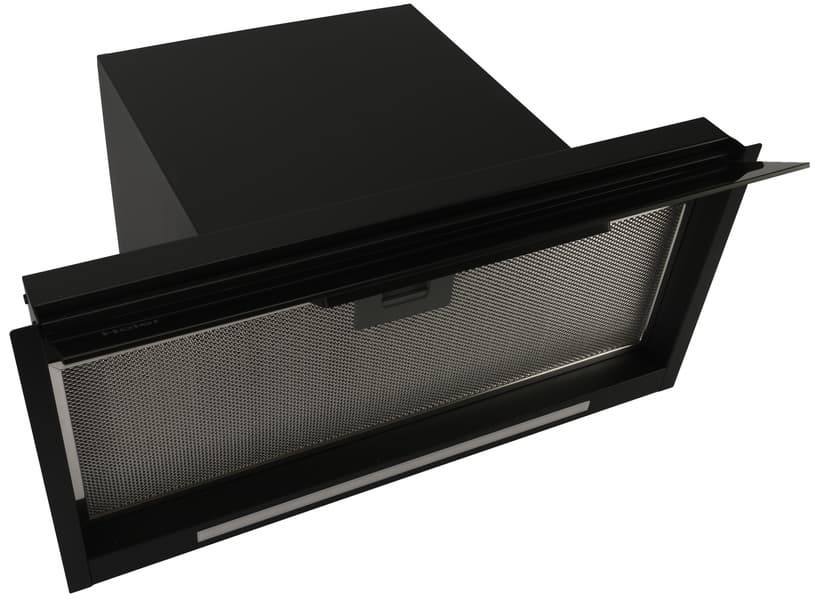 Благодаря специальной конструкции корпуса эту вытяжку можно либо установить отдельно с настенным креплением, либо встроить в верхний кухонный шкаф. Разработчик называет ее «встраиваемой вытяжкой с выдвижным экраном», однако это не классическая телескопическая модель. У нее есть небольшой откидной козырек, на котором находится панель управления. Такое решение, по идее, позволит защитить верхний мебельный фасад от испарений (не секрет, что даже при работающей вытяжке на кухонных поверхностях нередко образуется влага, что ведет к размоканию и порче фасадов).