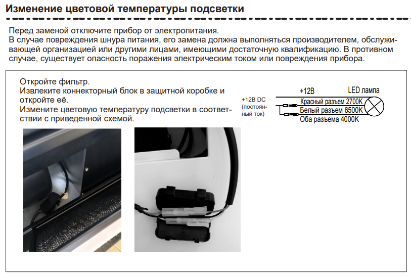 Отметим интересный нюанс. В данной модели пользователь может самостоятельно (или с помощью специалиста) настроить цветовую температуру подсветки. Не секрет, что многие пользователи очень щепетильно относятся к цветовой температуре и зачастую попросту не переносят слишком холодный (реже — слишком теплый) свет. Благодаря возможности такой настройки мы сможем сделать эксплуатацию наиболее комфортной, а также настроить подсветку таким образом, чтобы она наилучшим образом соответствовала остальной кухонной подсветке.