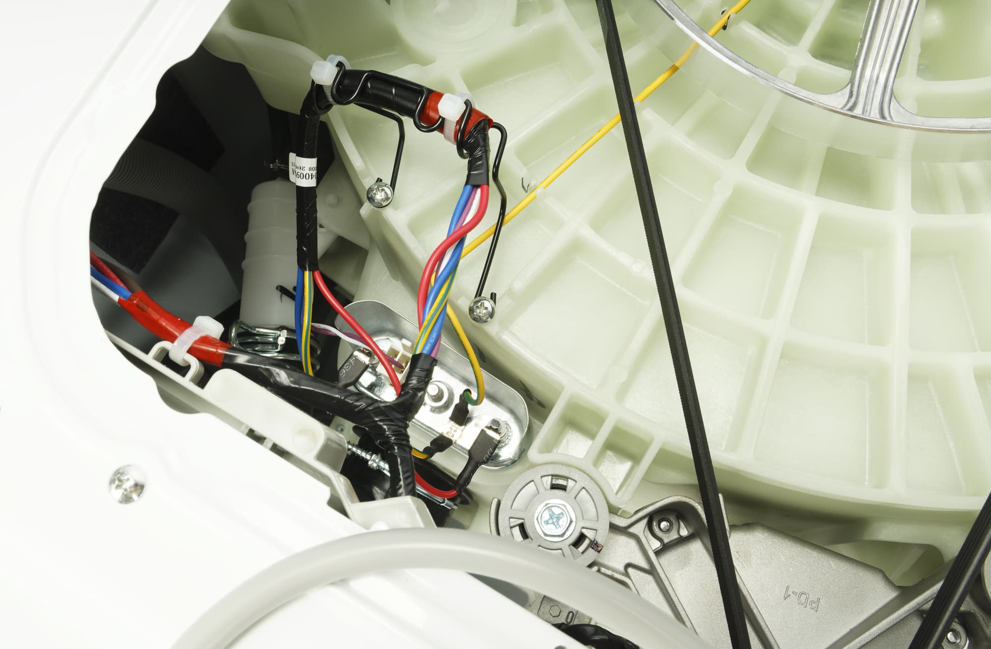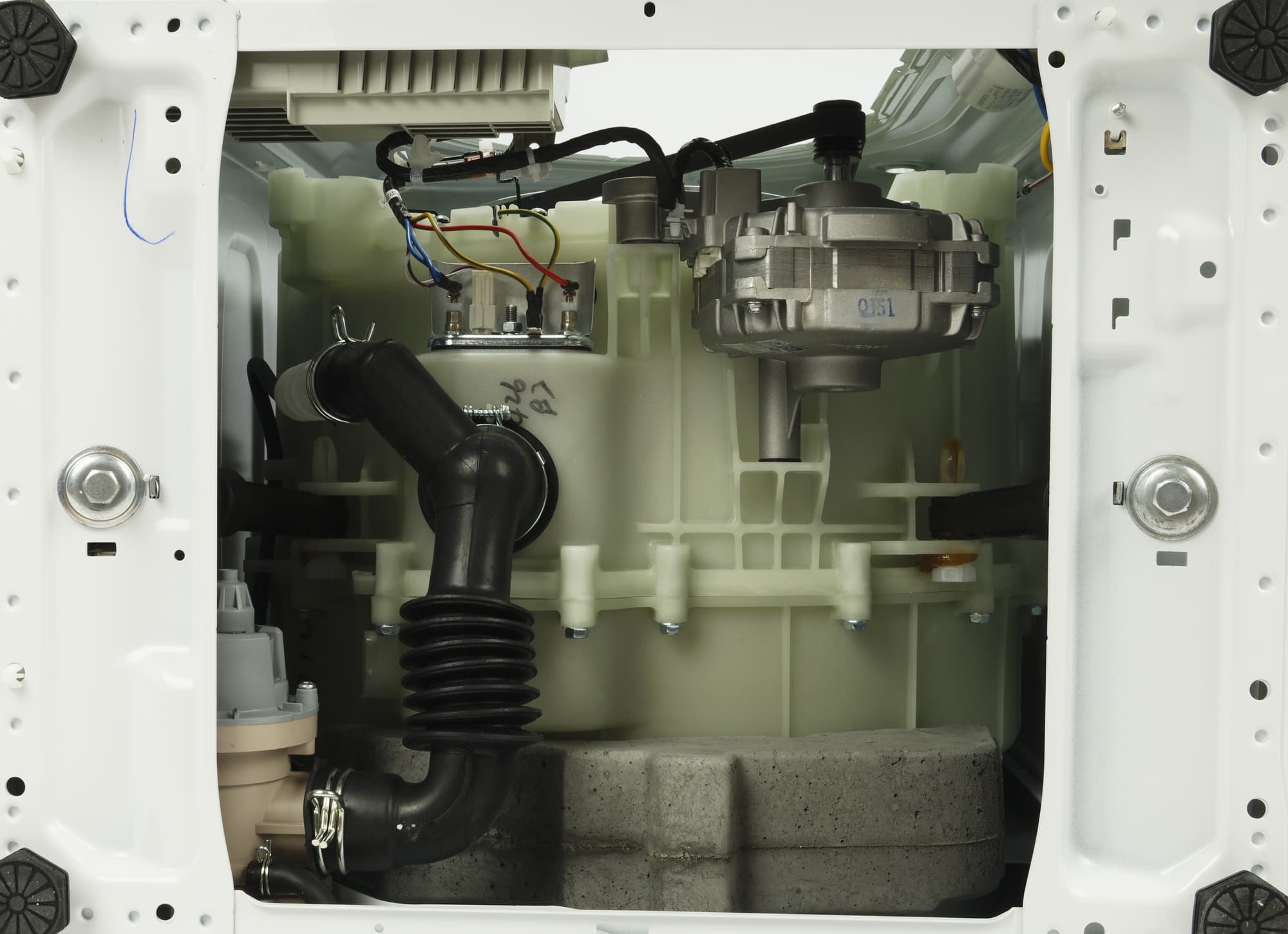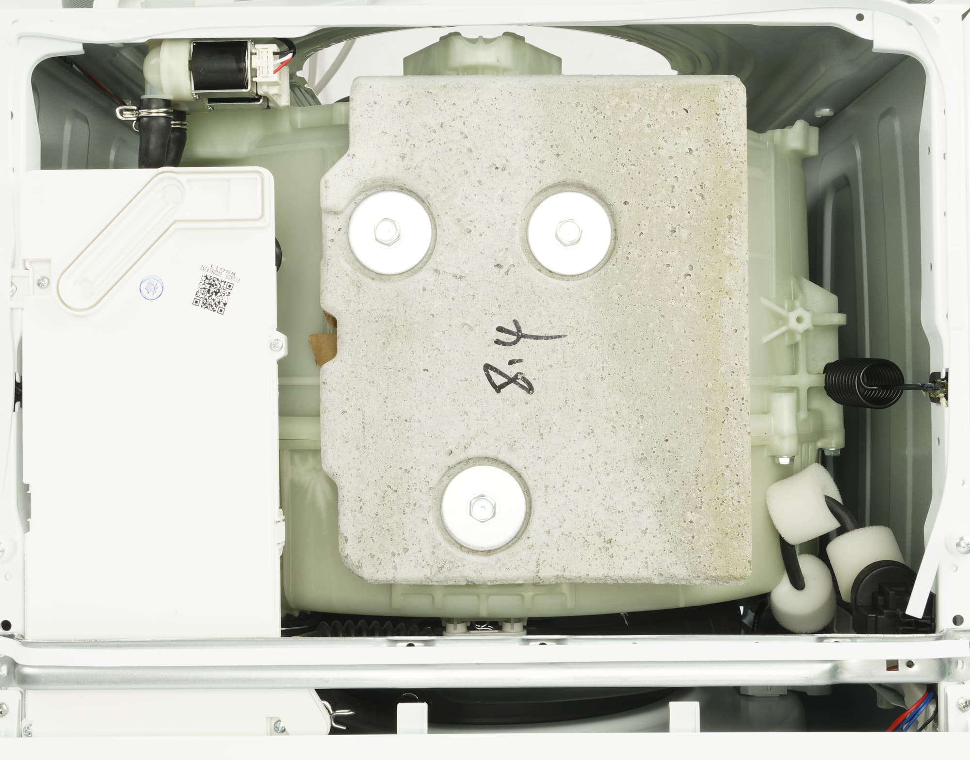 Внутренняя поверхность барабана покрыта узором из четырехугольных «подушечек»: производитель подчеркивает, что примененный здесь рельеф «Pillow» обеспечивает бережное и эффективное перемешивание белья при стирке. Резиновая манжета, как сообщается в инструкции, подвергнута антибактериальной обработке, препятствующей образованию плесени и грибков.