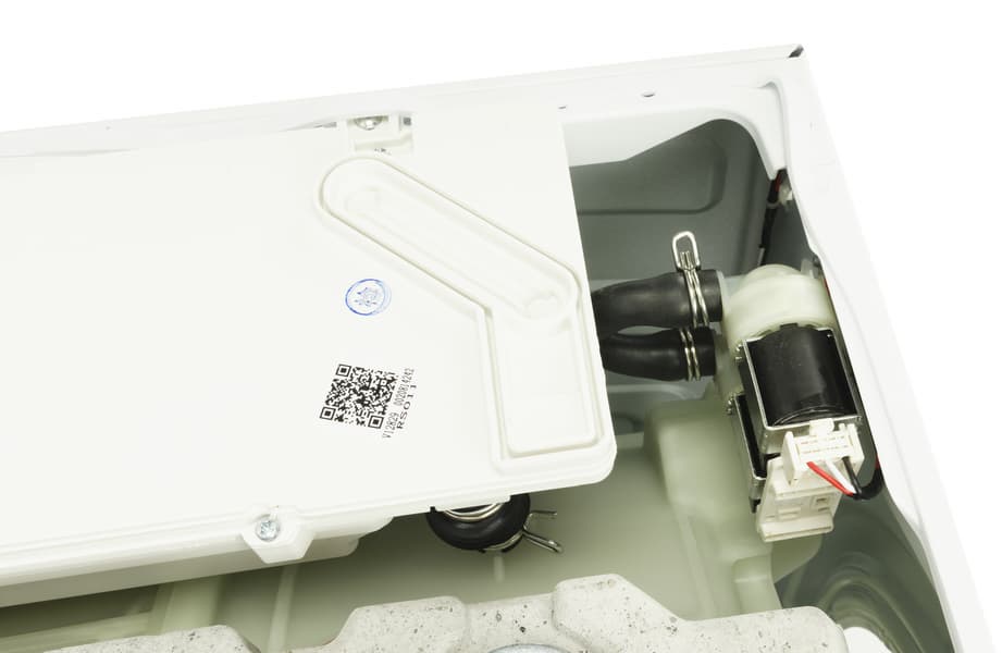Лоток в верхнем левом углу состоит из двух отделений: первое, с заслонкой, предназначено для жидких и порошкообразных моющих средств. Рядом — ванночка для кондиционера с отметкой максимального уровня жидкости. Специального отсека для предварительной стирки в этой модели нет.