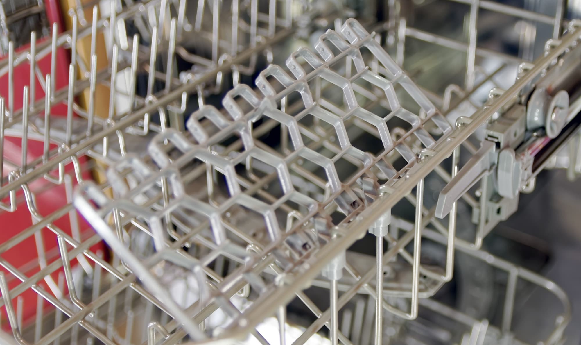 Для мытья посуды предусмотрены две выдвигающиеся корзины на колесиках плюс один лоток для мелких столовых приборов на самом верху.
